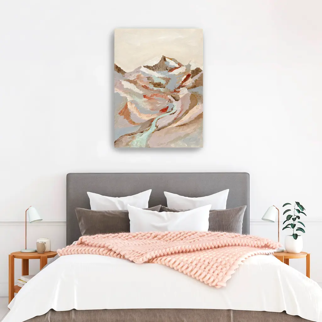 Soft earth tones and fluid shapes create a canvas that feels both grounded and ethereal. Our Gallery Wrap Canvas Prints are proudly assembled with high quality materials in California, USA. Each piece is printed on a thick, archival grade canvas using Giclee technology. It is then hand-stretched by our experienced artisans over solid wood bars, which will not warp over time. The final product is a piece personally crafted for you to confidently display on your wall. Care and Assembly: Ensure that the location of your piece has little to no exposure to heat, sunlight, and moisture. Wipe clean, only if needed. Each piece includes a sawtooth hanger to hang on your wall vertically.