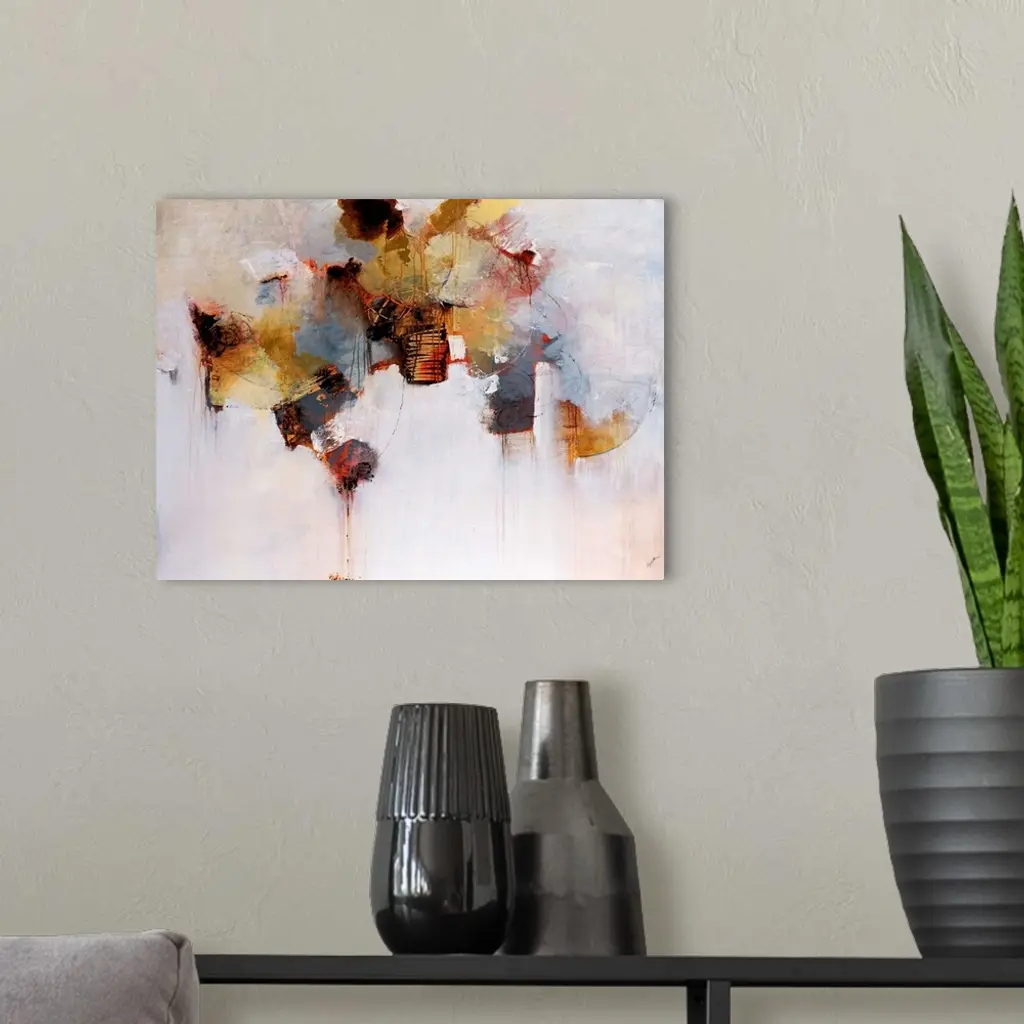 This oversized wall art for the home office of an abstract painting made with a variety of brushstrokes and buildup of texture.