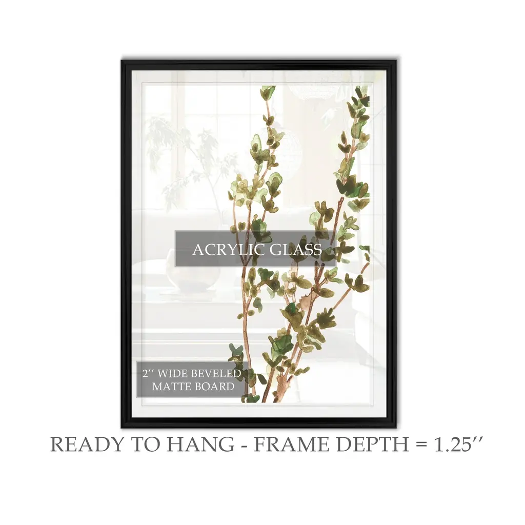Earthtone Herbs II -Custom Framed Print A premium custom framed giclee print Featuring a beveled a matt , acrylic glass, and a high quality giclee print BLACK FRAMED - 4 SIZES AVAILABLE - BLACK FRAMED 18''x24''- Overall Size 22''x30'' - Overall Size 26''x36''' - Overall Size 30''x42''' - Overall Size Each piece is made to order. Built to Last Each piece comes ready to hang Fade and Water resistant Made domestically