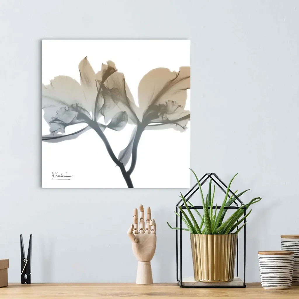 Contemporary home decor artwork of an x-ray photograph of a flower.