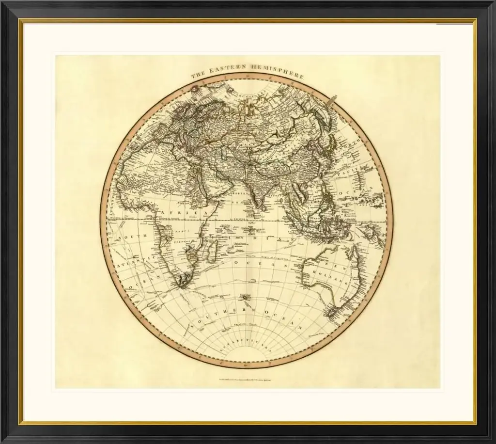"Eastern Hemisphere, 1801" Framed Digital Print By John Cary, 46x41"