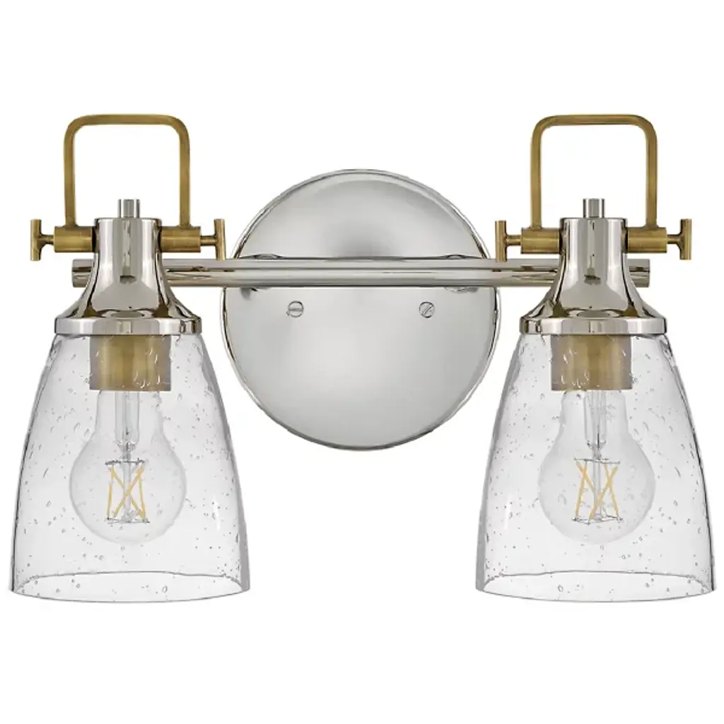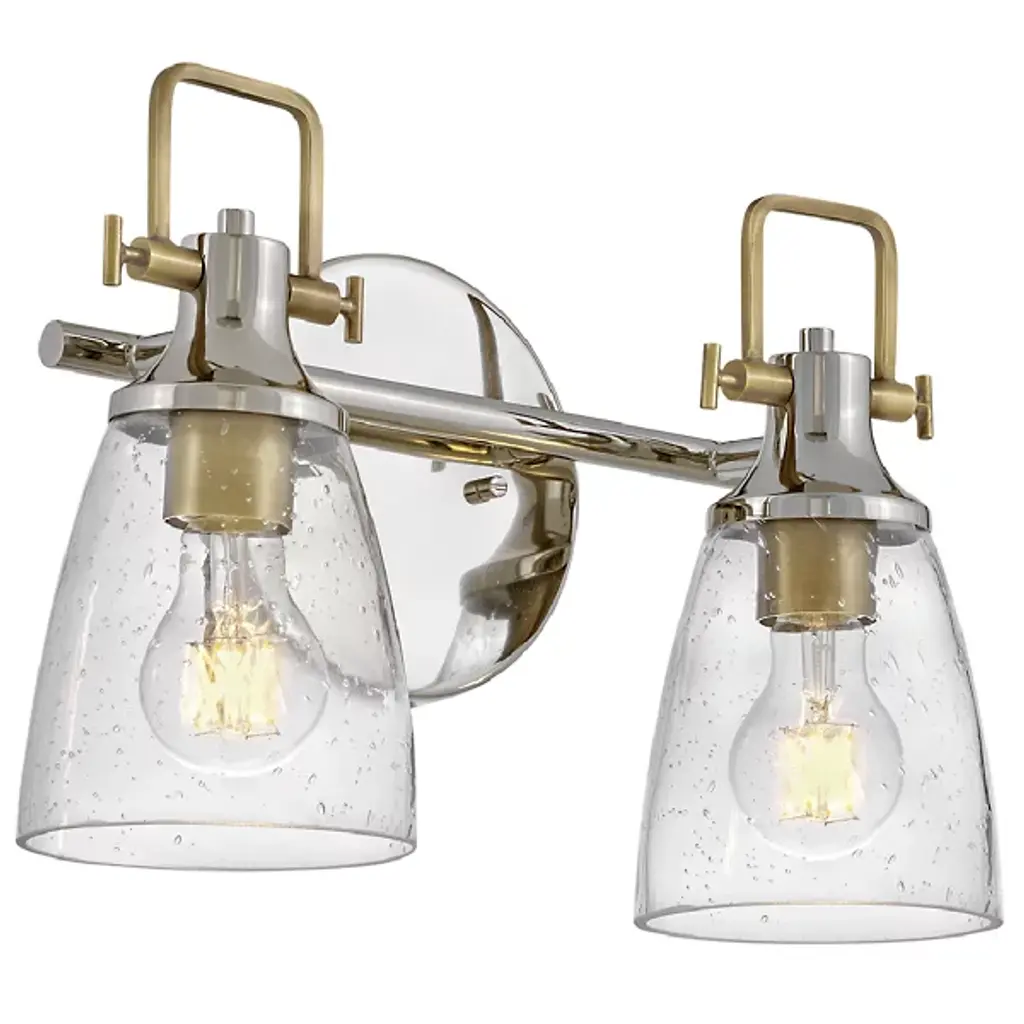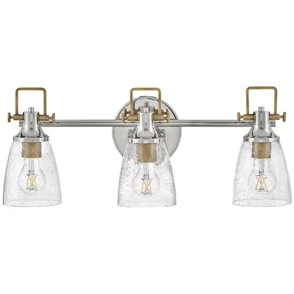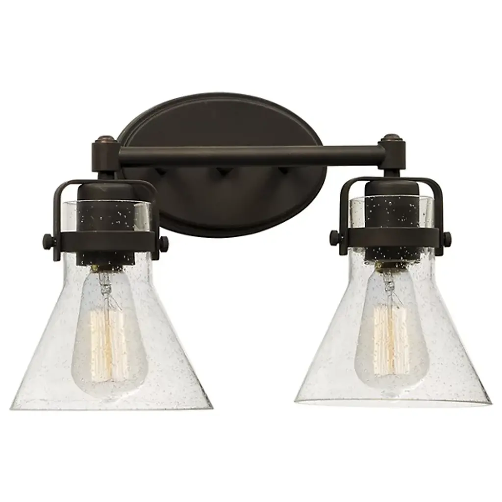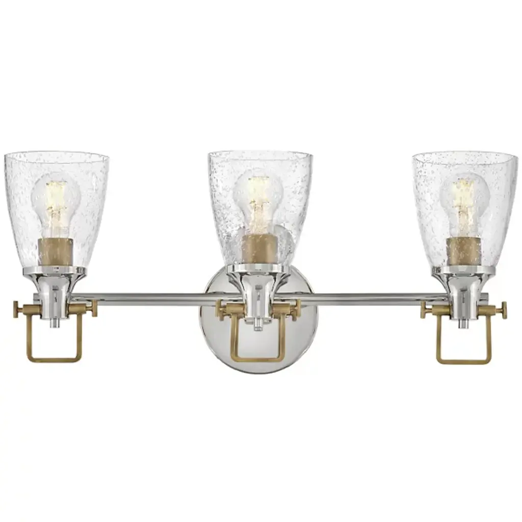 An industrial construction with a hip aesthetic. Complement the blend of styles in your bathroom with the handsome Easton Vanity Light from Hinkley. It’s a real looker mounted atop the bathroom mirror. It gives off a sophisticated look with its two-toned finish. Industrial knobs and yoke accents add complexity to the piece that translates to a bold silhouette. The bath bar’s vintage character comes through clearly with the clear seeded glass shade. It’s easy to get lost in the shade’s myriad of details. A flip of the switch transforms the seeded notes into delicate highlights. Light pours out evenly for a clean, comfortable glow.