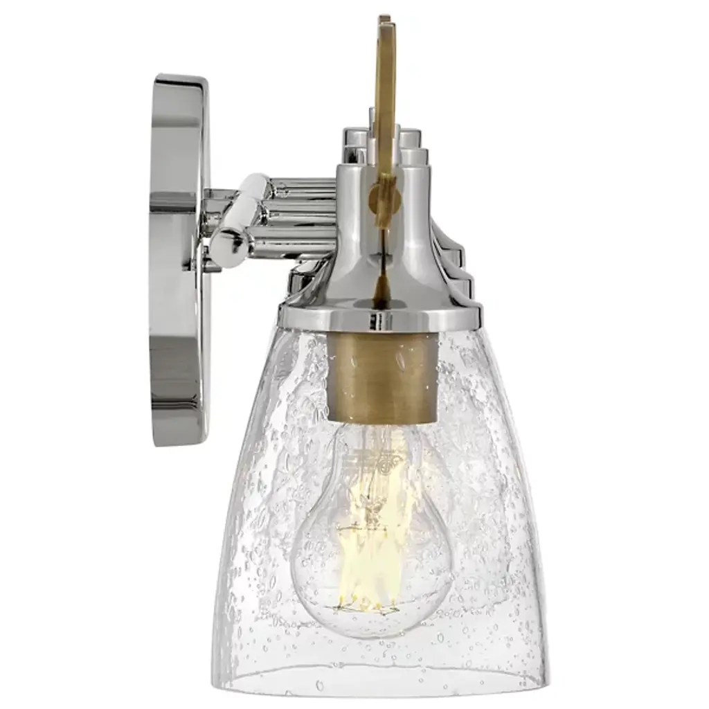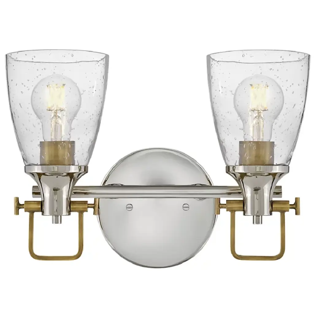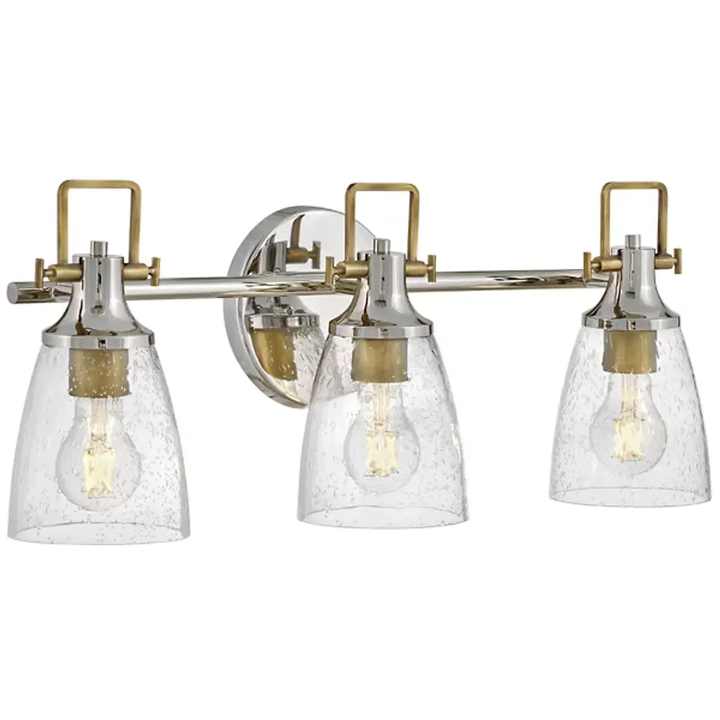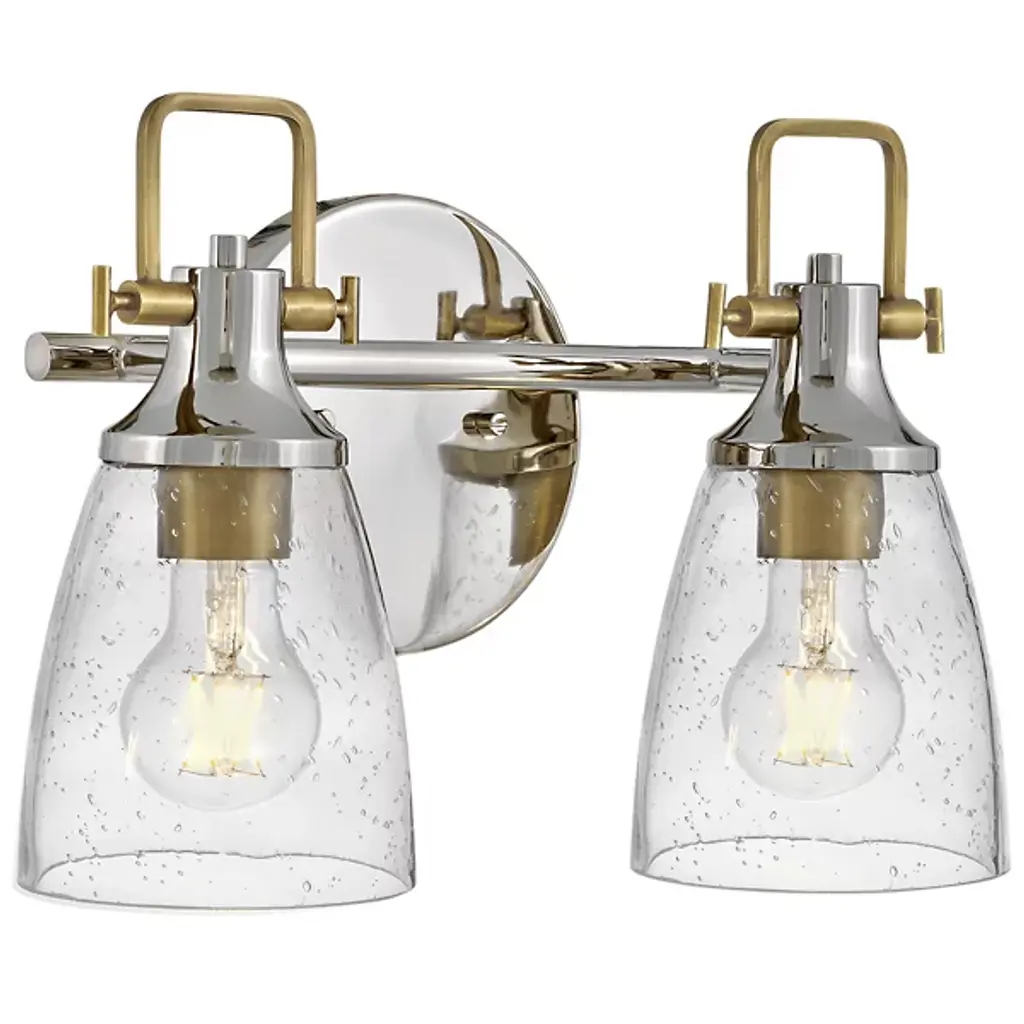 An industrial construction with a hip aesthetic. Complement the blend of styles in your bathroom with the handsome Easton Vanity Light from Hinkley. It’s a real looker mounted atop the bathroom mirror. It gives off a sophisticated look with its two-toned finish. Industrial knobs and yoke accents add complexity to the piece that translates to a bold silhouette. The bath bar’s vintage character comes through clearly with the clear seeded glass shade. It’s easy to get lost in the shade’s myriad of details. A flip of the switch transforms the seeded notes into delicate highlights. Light pours out evenly for a clean, comfortable glow.
