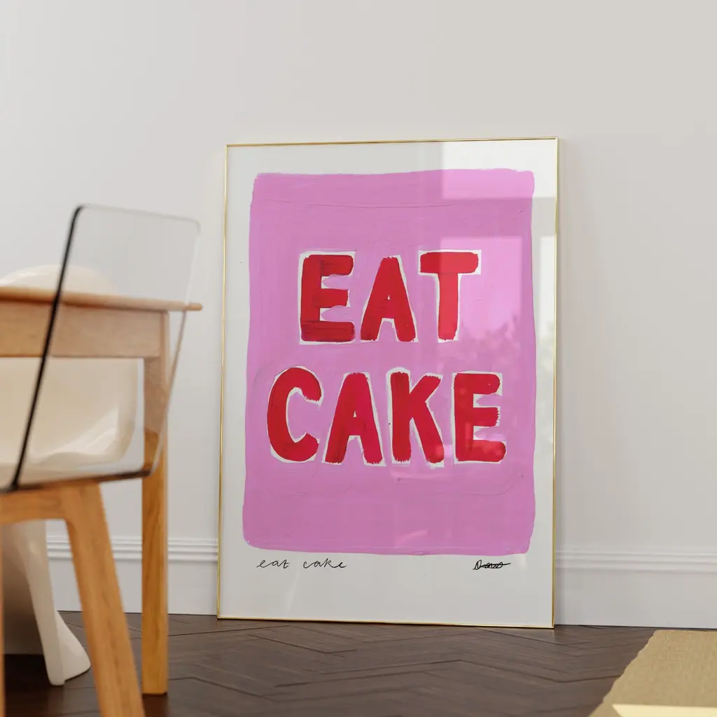 Eat Cake Hand Painted Art Print - A2Hand painted by Natalie and made into a beautiful print, this print is a perfect addition to any home decor. Smooth fine art 230 gsm matte card. Printed with vivid colour and detail. Sold without a frame.