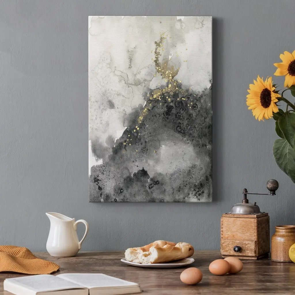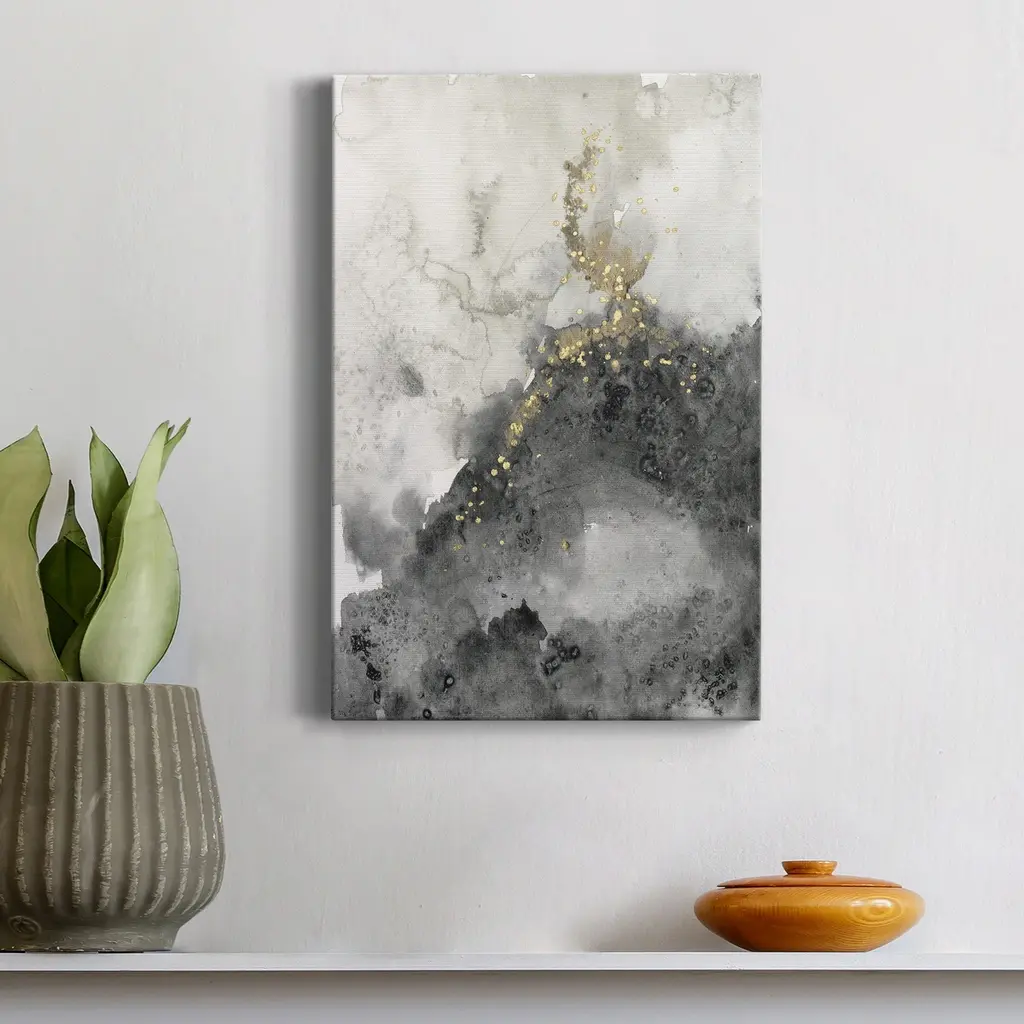 Ebony & Gold II Premium Gallery Wrapped Canvas - Ready to Hang A premium hand stretched gallery wrapped canvas print created to last. Featuring a beveled a solid wood stretcher bar, each piece comes ready to hand 5 SIZES AVAILABLE 8''X12'' - Overall Size 16'X20'' - Overall Size 24''x32'' - Overall Size 30''x40'' - Overall Size 36''x48'' - Overall Size Each piece is made to order. Built to Last Each piece comes ready to hang Solid wood stretcher Fade and Water resistant Made domestically