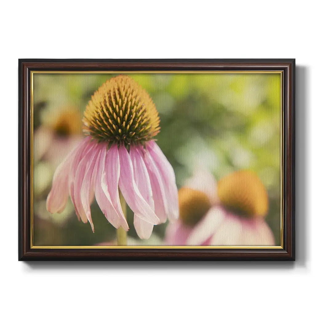 Echinacea Study II Premium Framed Canvas- Ready to Hang A Premium Framed Canvas created to last. Framed in distressed wood and available in an array of sizes and colors Featuring a beveled a solid wood stretcher bar, each piece comes ready to hand 3 SIZES AVAILABLE 16''X20'' - Overall Size 18'X27'' - Overall Size 24''x36'' - Overall Size Each piece is made to order. Each piece comes with hanging hardware. Made in the USA Ready to Hang Giclee Paper Print Acrylic Glass Beveled Matt Board