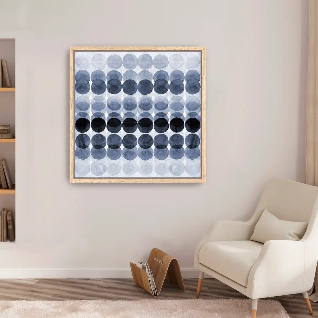 Elevate your decor with this stunning "Echoes of Flow" blue abstract pattern canvas art by Danushka Abeygoda. Featuring a dynamic interplay of various blue tones, this artwork adds a touch of modern sophistication to any space. The intricate patterns and fluid lines create a captivating visual experience, making it an ideal centerpiece for both contemporary and classic interiors. Available in black frame, dark walnut frame, oak frame, or as a wrapped canvas. Our Gallery Wrap Canvas Prints are proudly assembled with high quality materials in California, USA. Each piece is printed on a thick, archival grade canvas using Giclee technology. It is then hand-stretched by our experienced artisans over solid wood bars, which will not warp over time. The final product is a piece personally crafted for you to confidently display on your wall. Care and Assembly: Ensure that the location of your piece has little to no exposure to heat, sunlight, and moisture. Wipe clean, only if needed. Each piece includes a sawtooth hanger to hang on your wall horizontally.