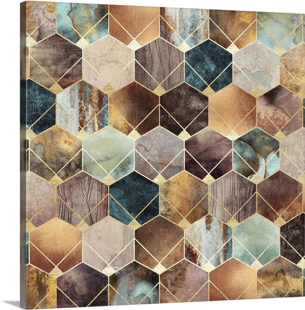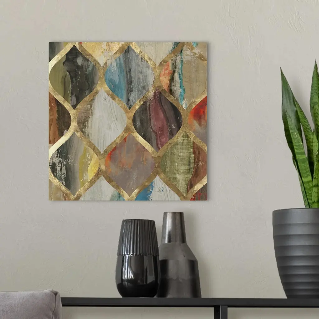 Contemporary home decor artwork of an ornate and organic colorful pattern.