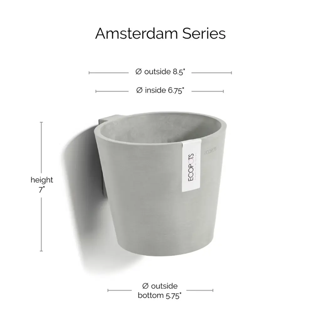 Ecopots Amsterdam Wall Durable Modern Round Indoor/outdoor Recycled-based Composite Hanging Flower Pot Planter, White Grey, 8"