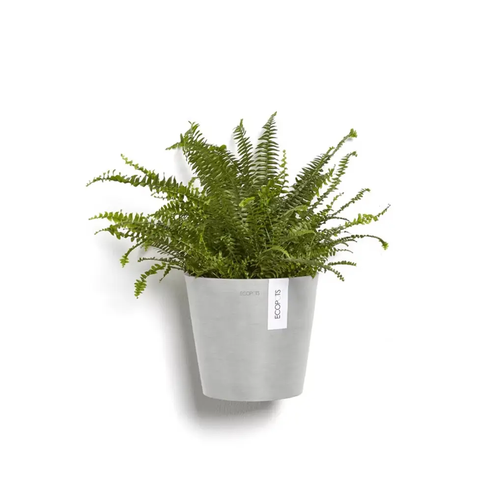 The Ecopots Amsterdam Wall is a round, hanging flowerpot that allows you to add a dash of green to any wall, whether indoors and outdoors. The Ecopots Amsterdam Wall is equipped with an innovative hanging system. It’s easy to install, and allows you to take the pot down and hang it up again effortlessly. This user-friendly design makes it easy to take care of your plants and change your wall decorations to suit your needs. In addition, this hanging flowerpot comes fitted with integrated water reservoir. It ensures that your plants get the water that they need, regulating the moisture content of the soil, and keeping your plants healthy and easy on the eye. The flowerpot doesn’t need much room, making it ideal for adding a touch of green to a small area or creating a green wall without taking up too much space. The round shape adds a gentle, natural aesthetic to any wall in or around your home.
