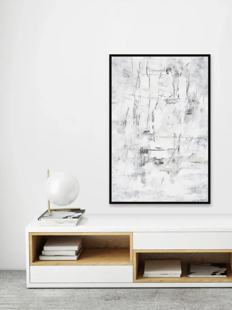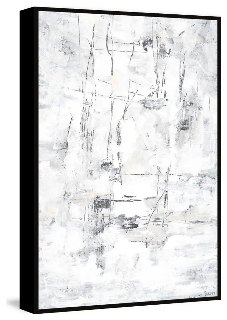 This cool, icy acrylic painting print features a snowy white abstract design with hints of gray and black. Proudly printed in the USA, this piece is printed on canvas before it''s stretched, and framed and mounted in a non-warping floater frame thereafter. With wall-mounting hooks included, this artful accent is ready to hang up as soon as it reaches your front door.Canadian artist, Parvez Taj uses water paints, photographs, software, and UV cured inks to create his wall art. His artwork connects the out-of-reach luxury art world with the modern, fashion-conscious home decorator by delivering high quality artwork that is both affordable and hip.Durable art print on high quality canvas by Parvez TajProfessionally hand stretchedFramed and mounted in non-warping floater frameArrives ready to hangIncludes a certificate of authenticityArtist signature on the front