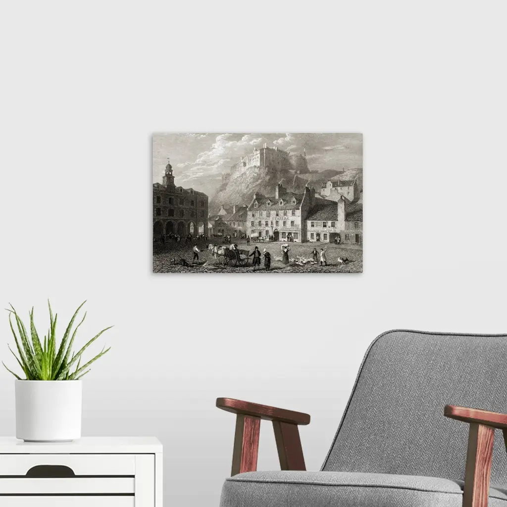 Edinburgh Castle From The Grass-Market. From The Original Painting By Lt. Col. Batty F. R. S. From The Book "Select Views Of Some Of The Principal Cities Of Europe," Published London 1832. Engraved By R Brandard.