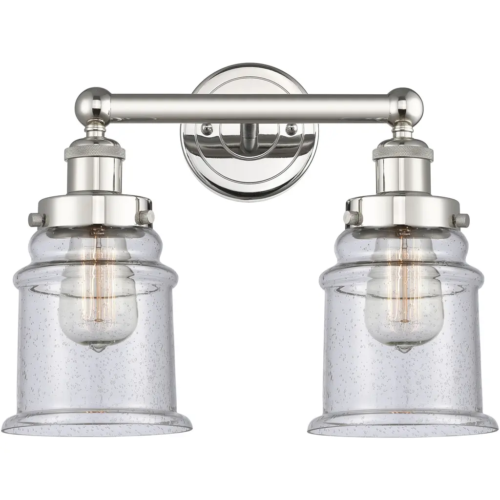 Edison Canton 2 Light 15 Inch Brushed Satin Nickel Bath Vanity Light Wall Light In Seedy Glass