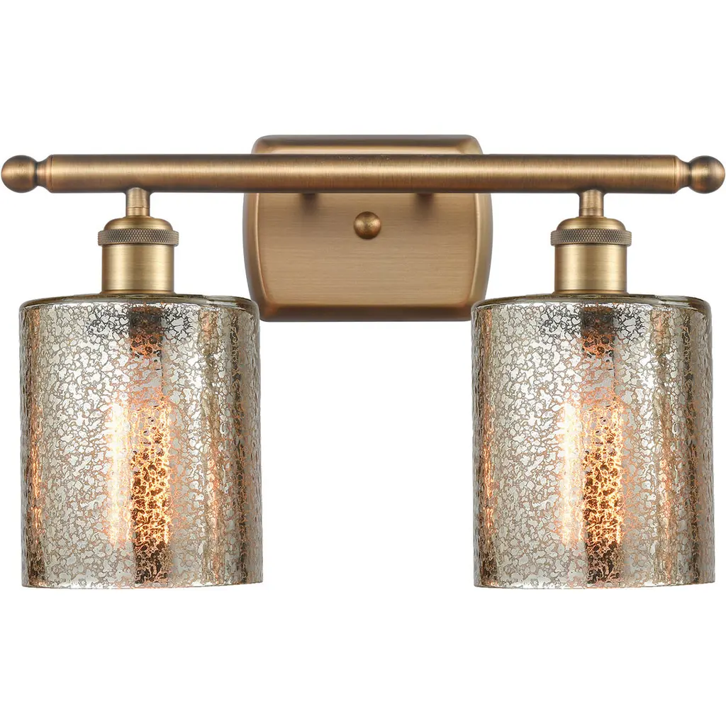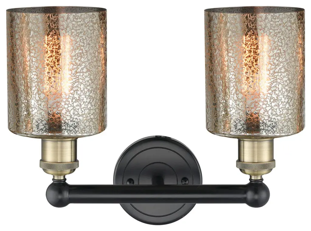 Edison Cobbleskill 2-Light 14" Vanity Light, Black Antique Brass, Mercury Shade