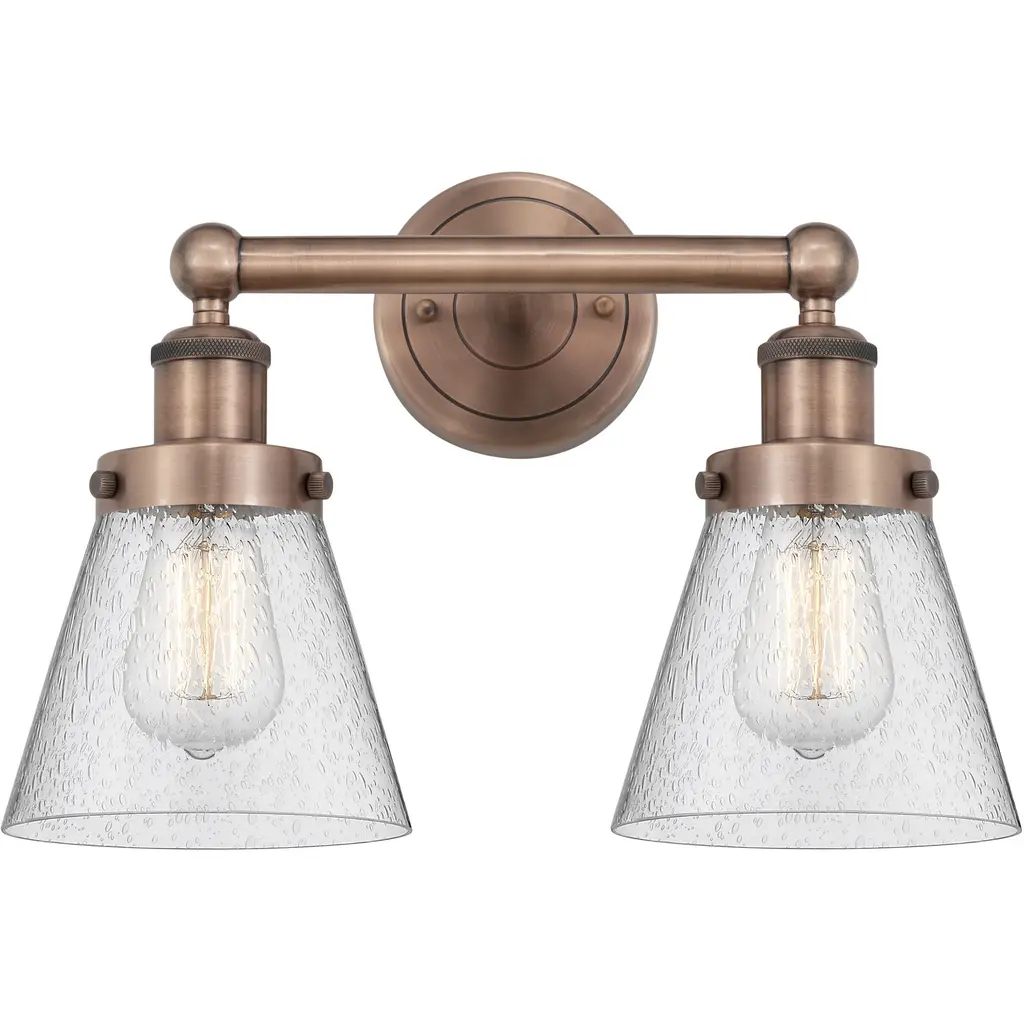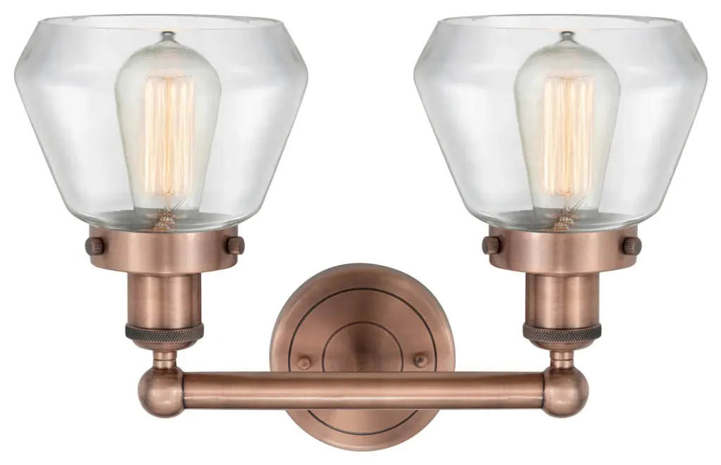 Edison Fulton 2-Light 16" Bath Vanity Light, Antique Copper Finish, Clear Shade
