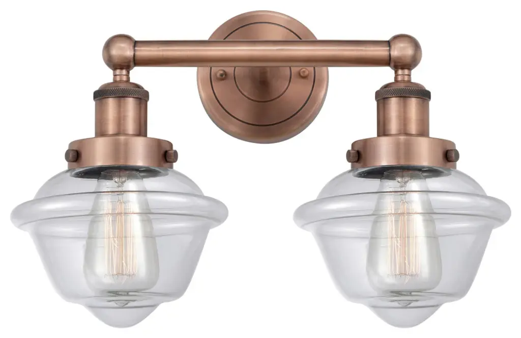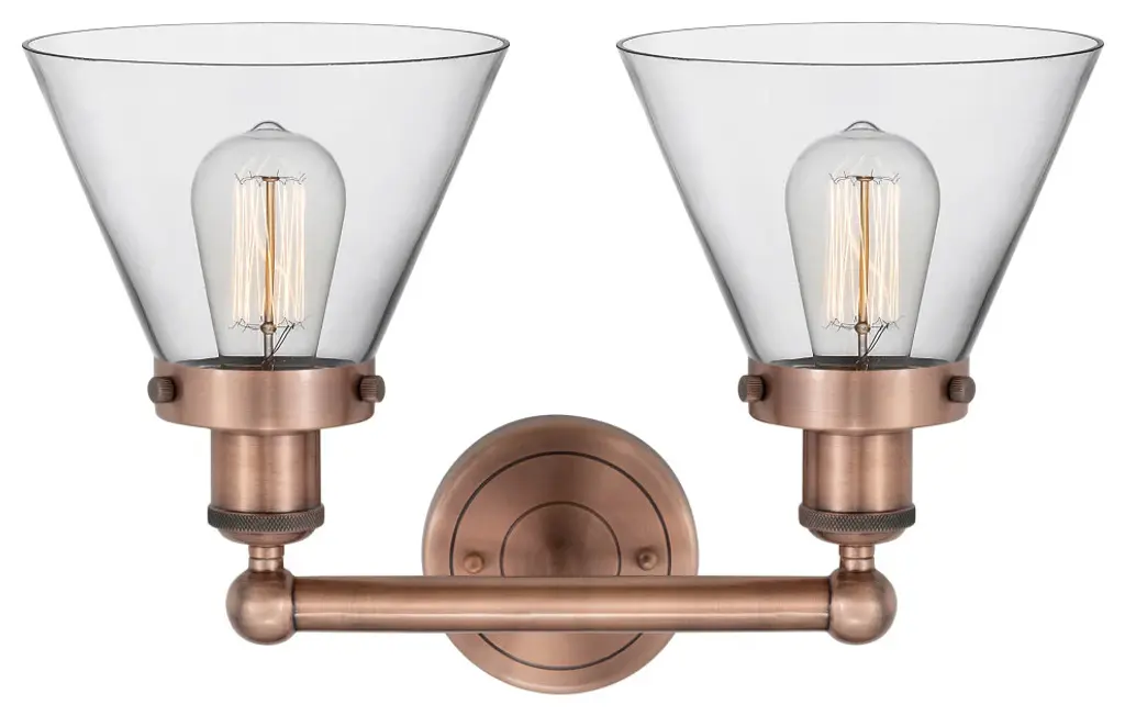 Edison Large Cone 2-Light 17" Vanity Light, Antique Copper Finish, Clear Shade
