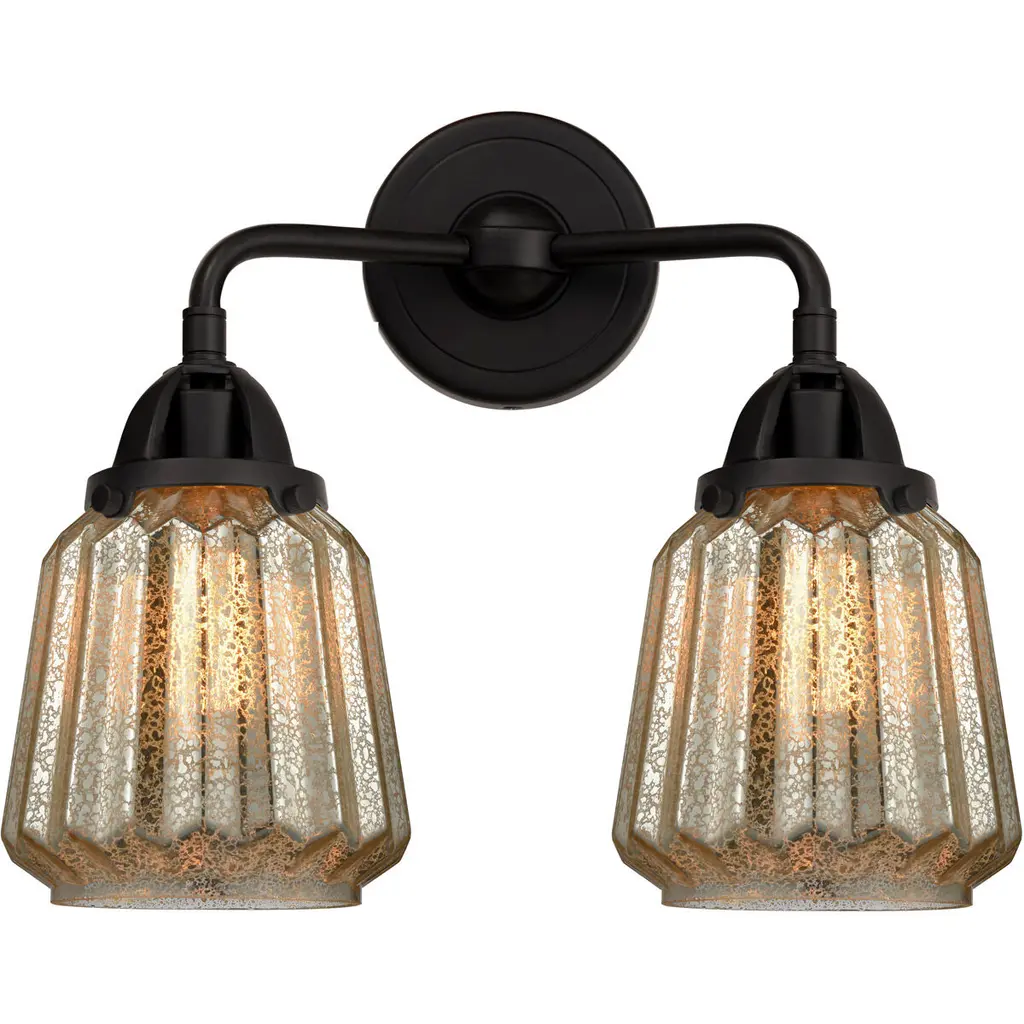 Edison Preston 2 Light 15.25 Inch Matte Black Bath Vanity Light Wall Light In Mercury