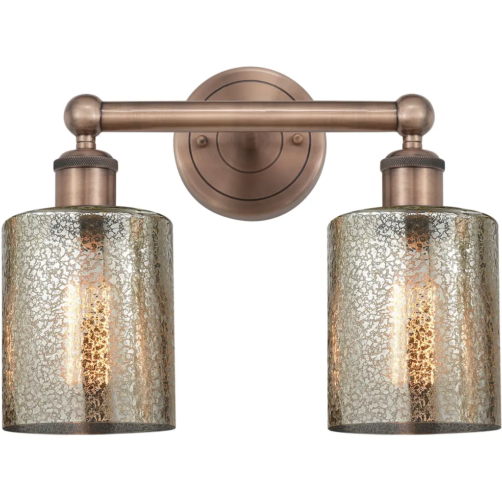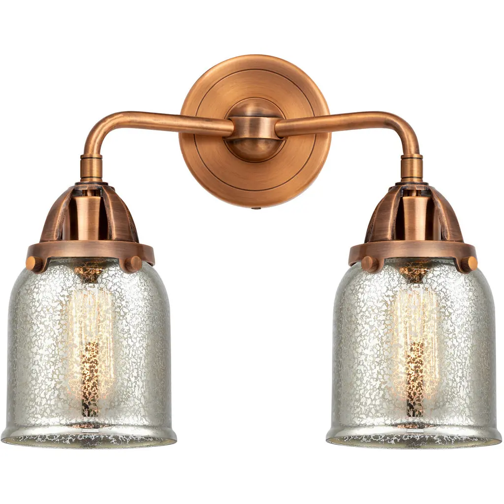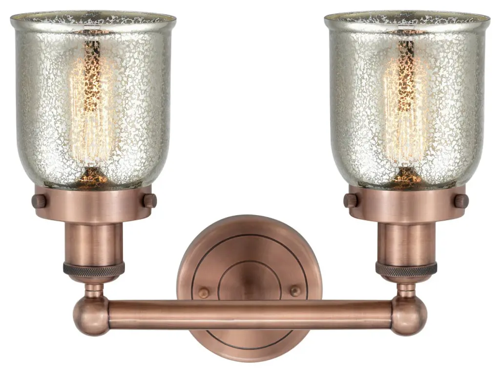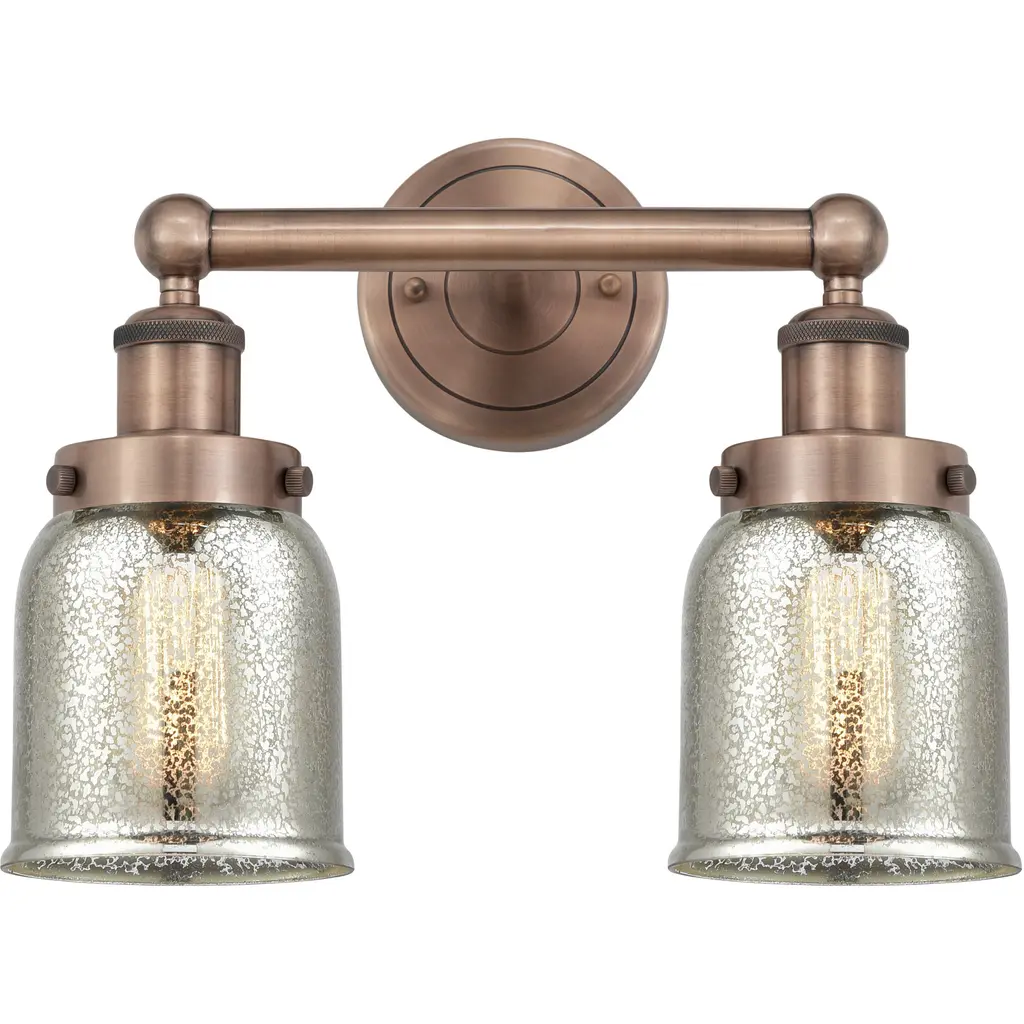 Edison Small Bell 2-Light 16" Vanity Light, Antique Copper Finish, Mercury Shade