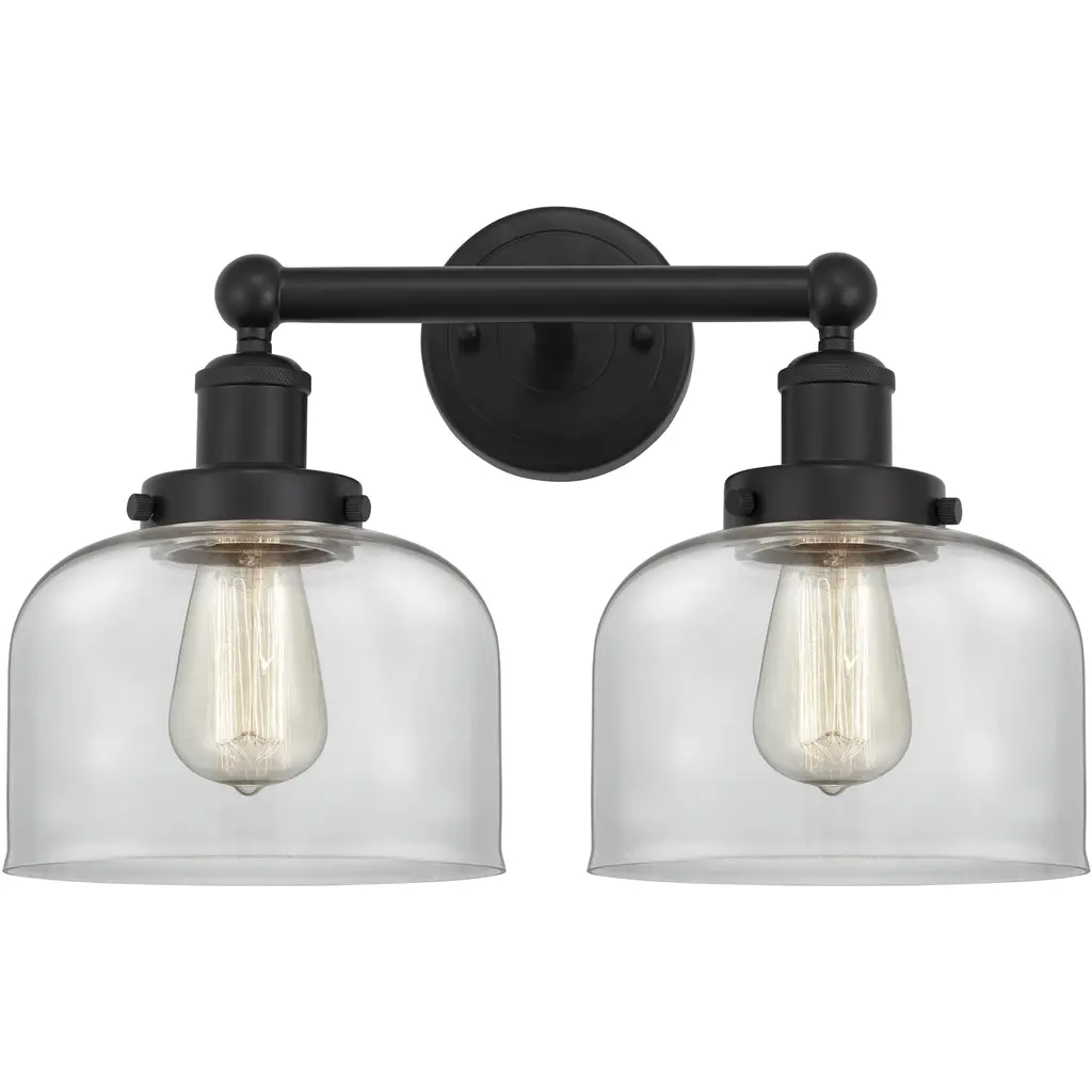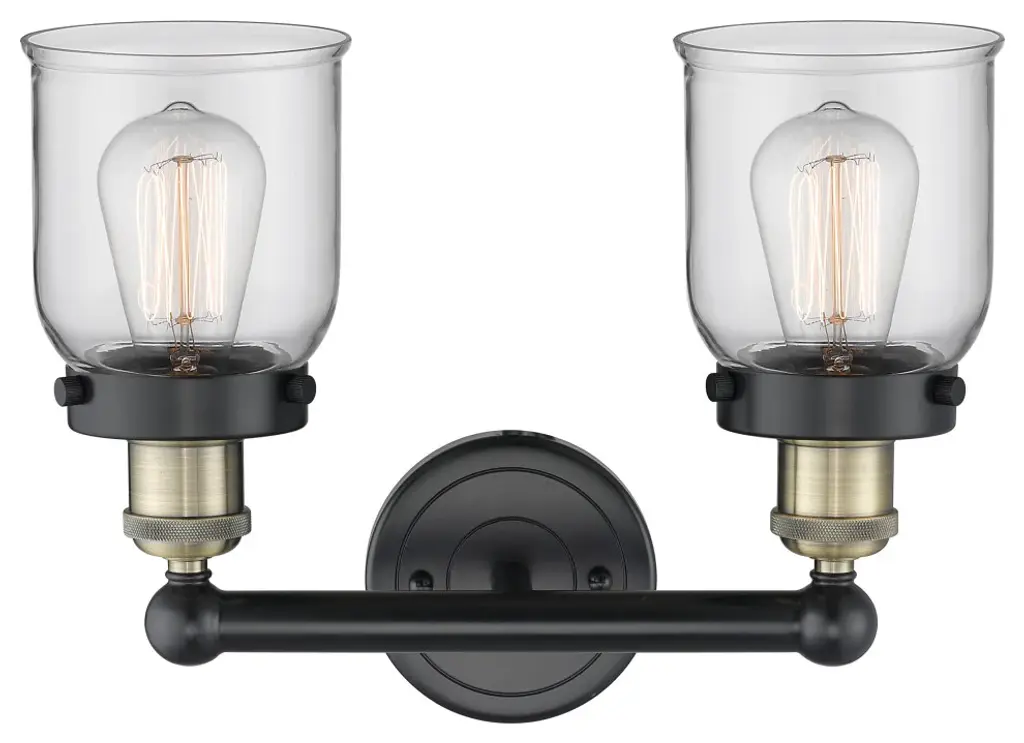 Edison Small Bell 2-Light 16" Vanity Light, Black Antique Brass With Clear Shade