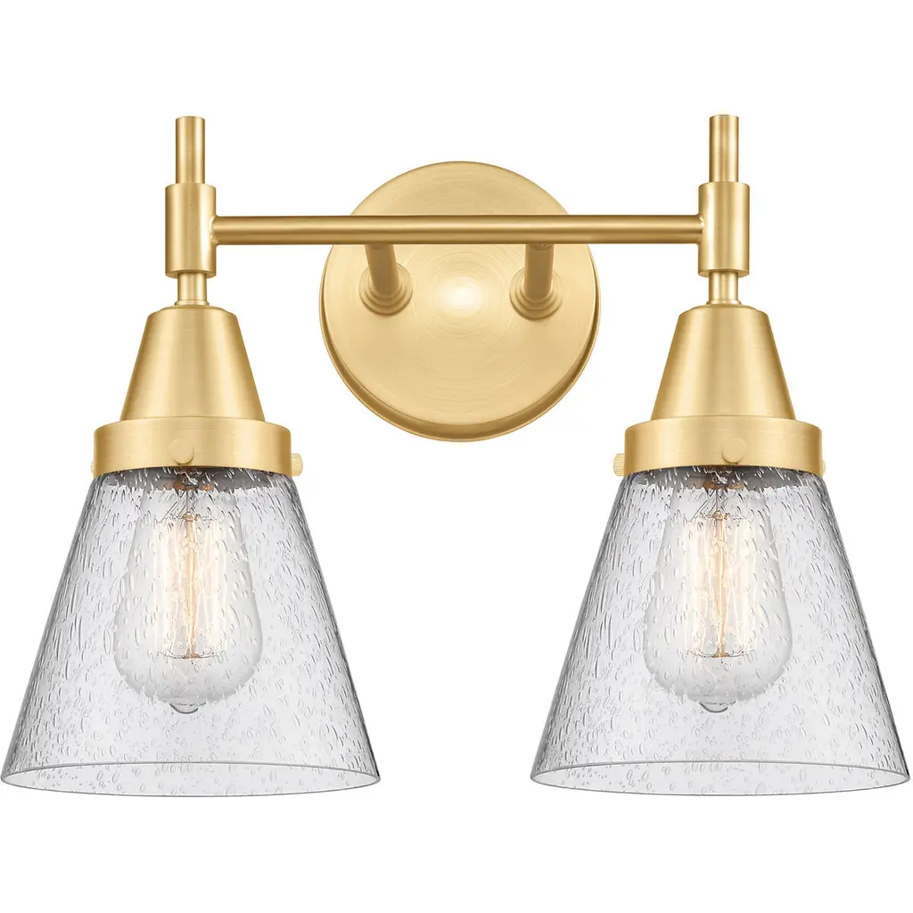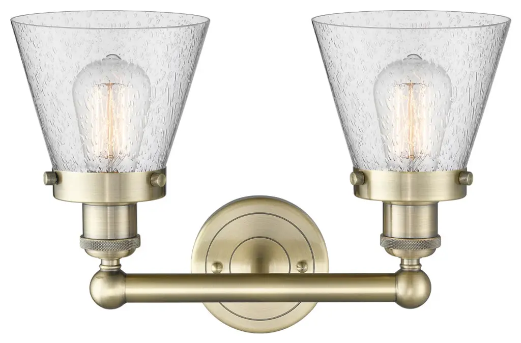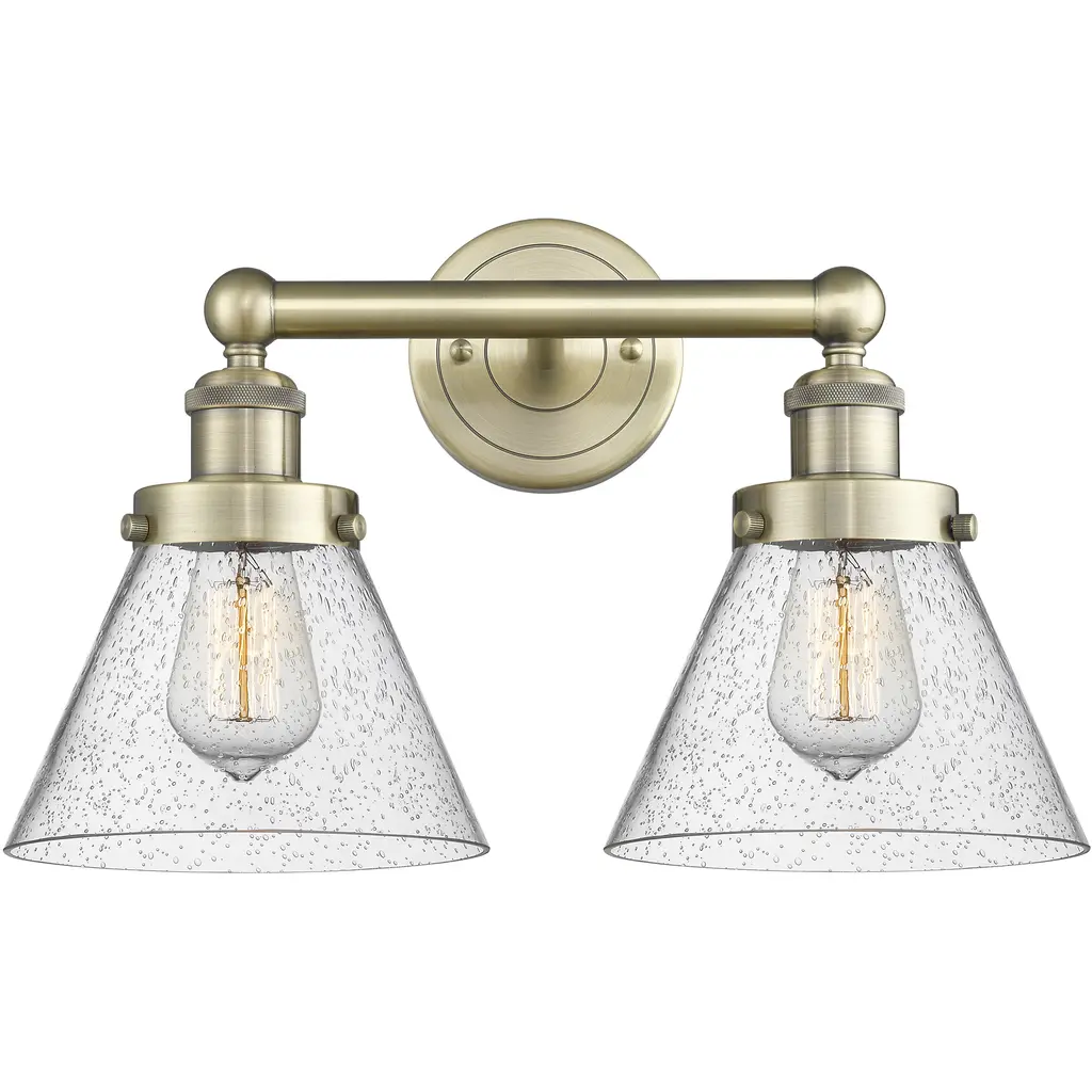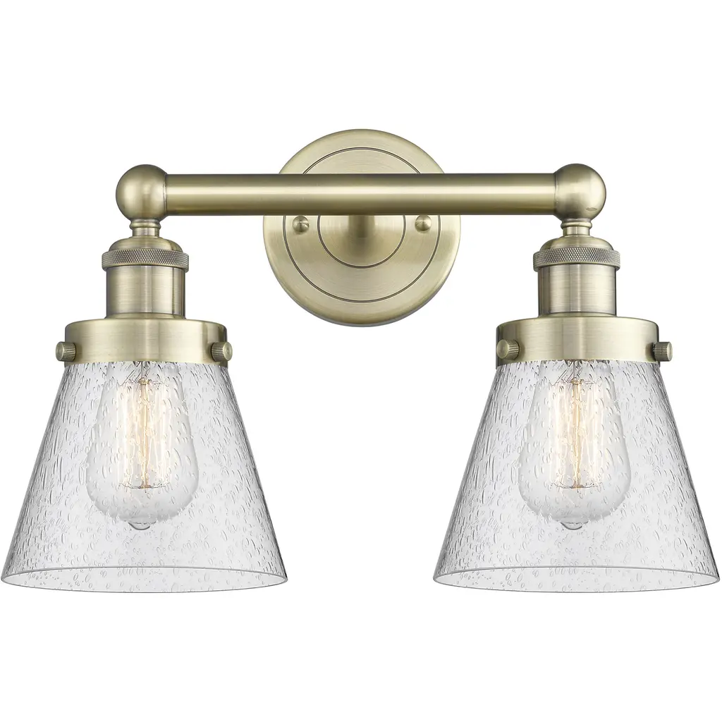 Edison Small Cone 2-Light 16" Vanity Light, Antique Brass Finish, Seedy Shade