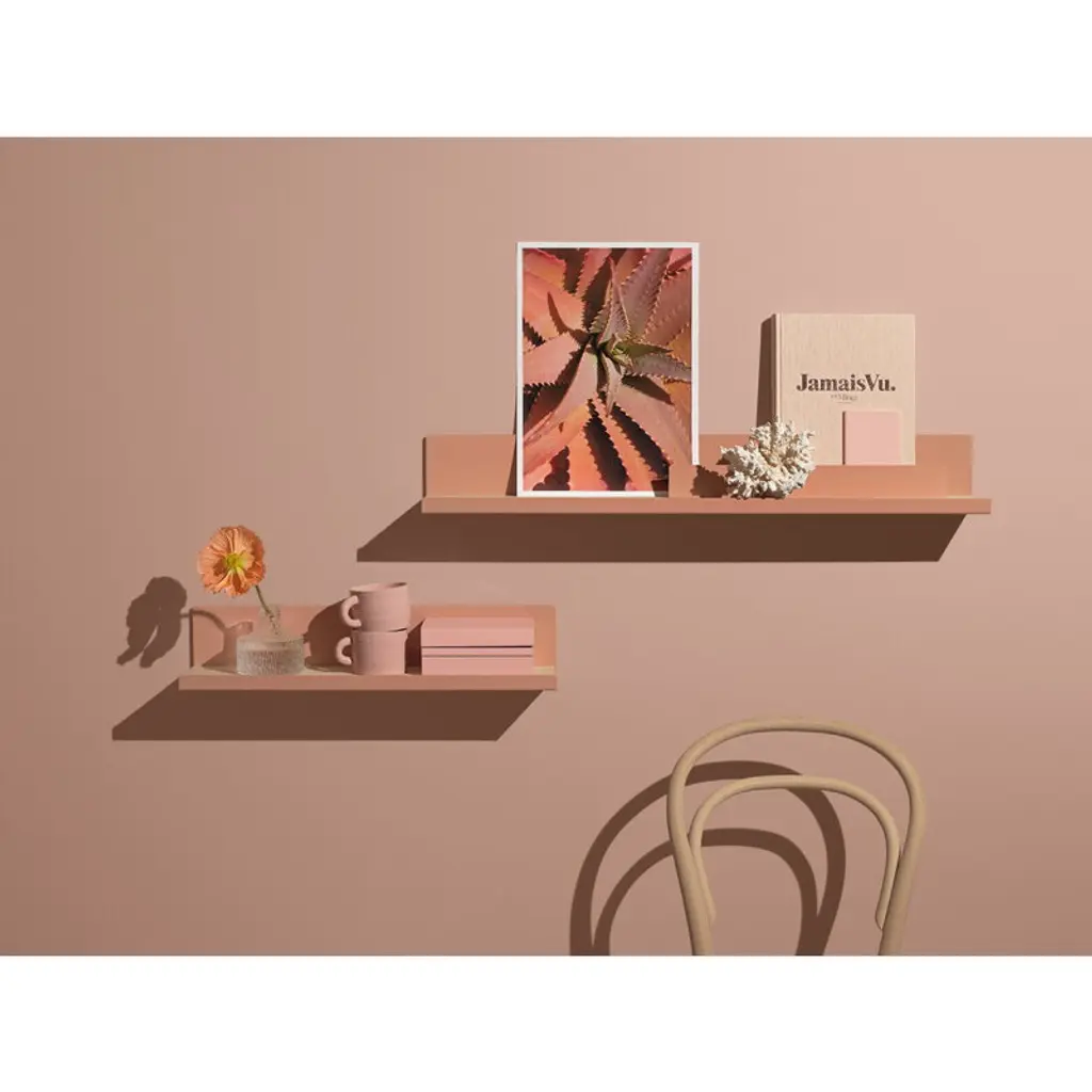 Mizetto's Edit 6 shelf offers extra storage space for your belongings with a minimalist yet distinctive style. The Scandinavian modern shelf features oak veneer and metal components – one metal shelf serves as a bookend, while the other is perfect for displaying cards, children's artwork or notes. The Edit 6 shelf not only provides stylish storage for decorative items but also, with its ample width, serves as a simple wall-mounted bedside table for your bedroom. The shelf's airy shape leaves room for creativity, too. Play around, experiment and create a set that fits perfectly on your wall. You can also try combining several Edit 6 wall shelves in different delicious colors!