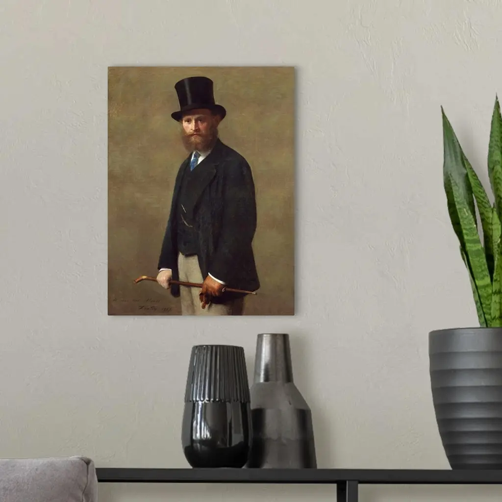 Edouard Manet was at the peak of his notoriety when the young Henri Fantin-Latour exhibited this portrait at the Salon of 1867. Manet himself chose not to submit any work that year, having had his submission rejected by the 1866 Salon jury. In this commanding image of the great French artist, Fantin portrayed Manet not as a painter, but as a flaneur, a sophisticated man-about-town whose eyes are open to every nuance of modern life. The background of the painting is almost completely blank, both in homage to works by Manet and in emulation of photographic portraits of the period. In 1867, having been regularly rejected by the official Salon, Edouard Manet decided to present a private exhibition of 56 of his works in an independent pavilion close to the Exposition Universelle in Paris. Henri Fantin-Latour's decision to submit this portrait of his friend - signed "To my friend Manet" - to the Salon that year may have been calculated to play off Manet's increasing notoriety. A critic admitted that it was hard to reconcile the elegant figure in the portrait with the long-haired bohemian he had imagined Manet to be.