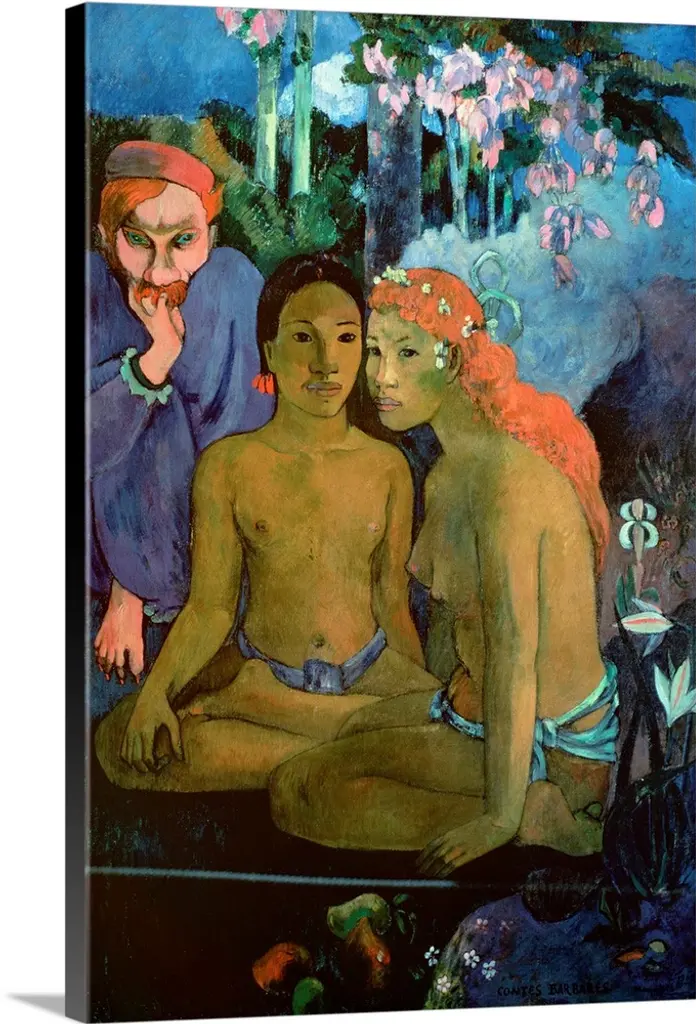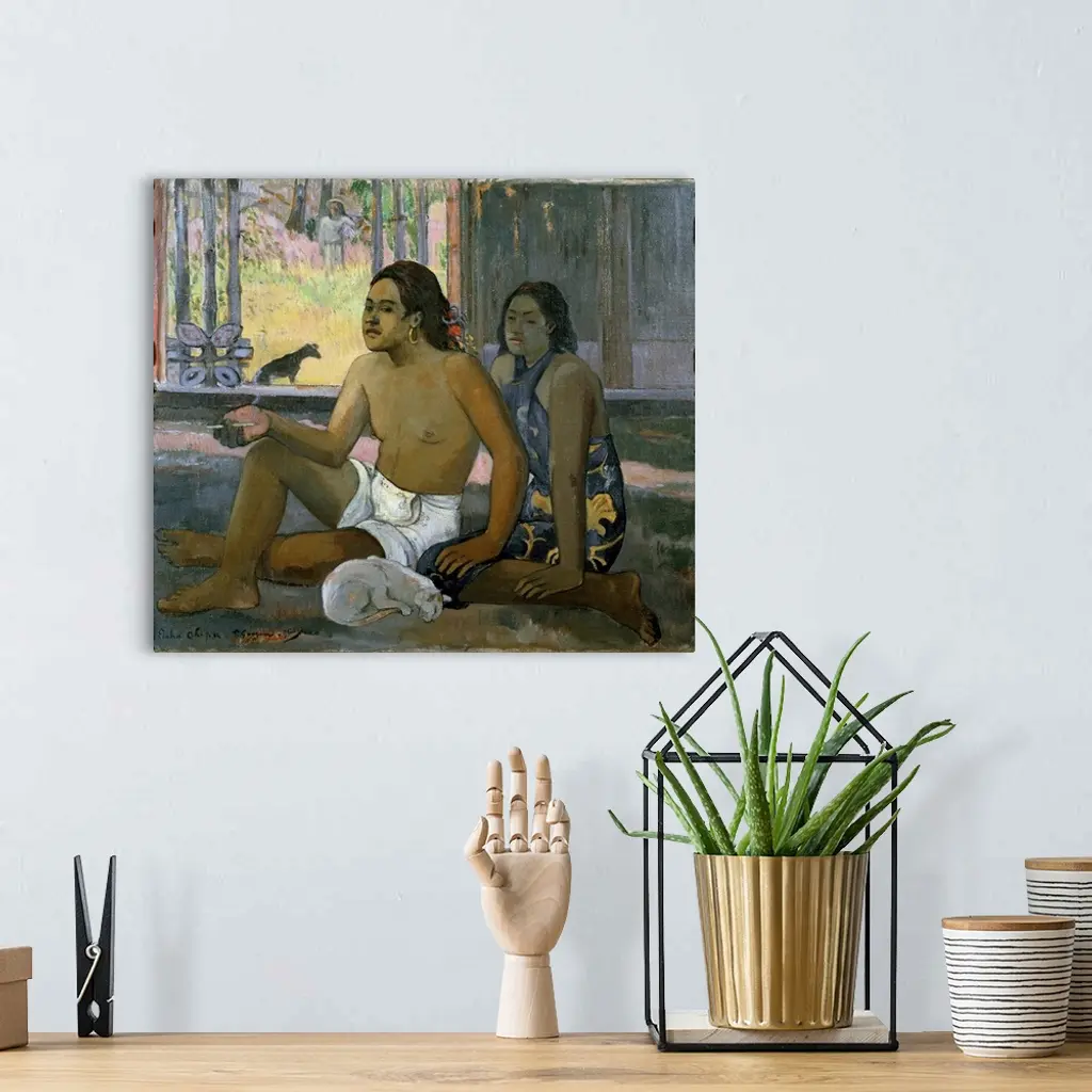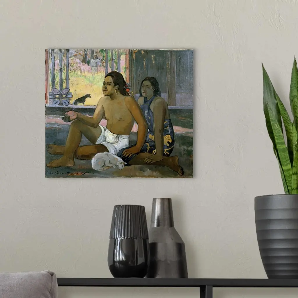 Eiaha Ohipa (Not working). A Tahitian couple in a room, with a white cat asleep. Painting by Paul Gauguin (1848-1903), 1896. Originally oil on canvas, Moscow, Pushkin museum.