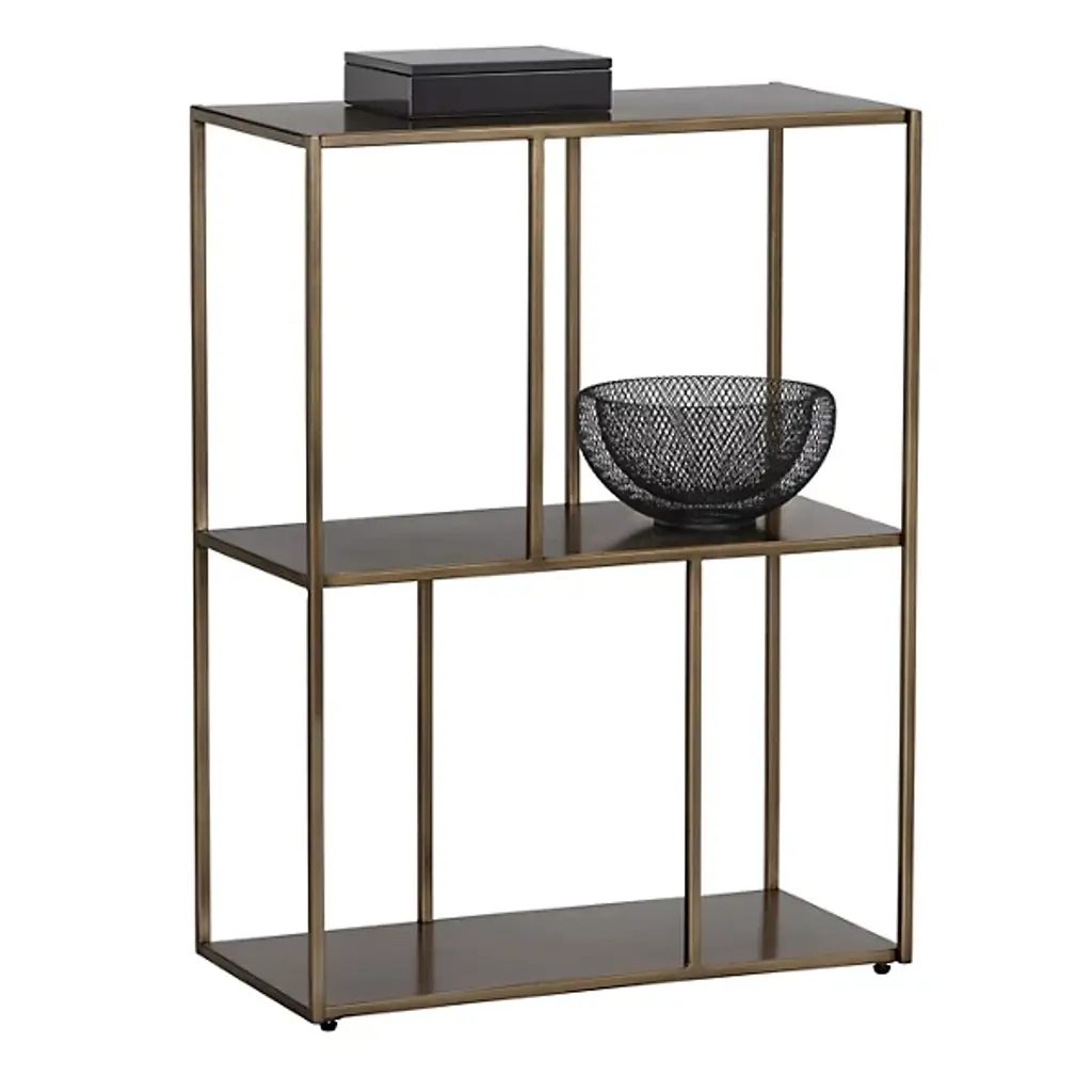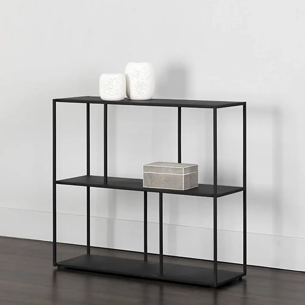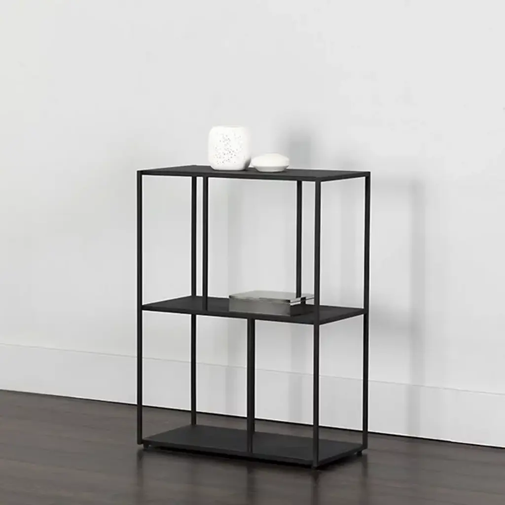 The Eiffel Low Bookcase from Sunpan combines sleek industrial design with functional elegance. Crafted in Vietnam from sturdy iron, its open, minimalist structure provides the perfect backdrop for displaying books, artwork, or cherished decor. The open architectural lines and slender vertical elements create a striking silhouette that shows off its entire structure, enhancing it without overwhelming your space. Durable yet refined, this versatile bookcase blends practicality with contemporary charm, making it an ideal addition to modern or industrial-inspired interiors.