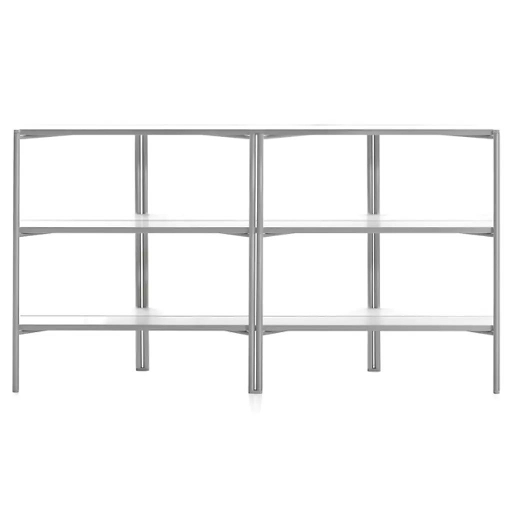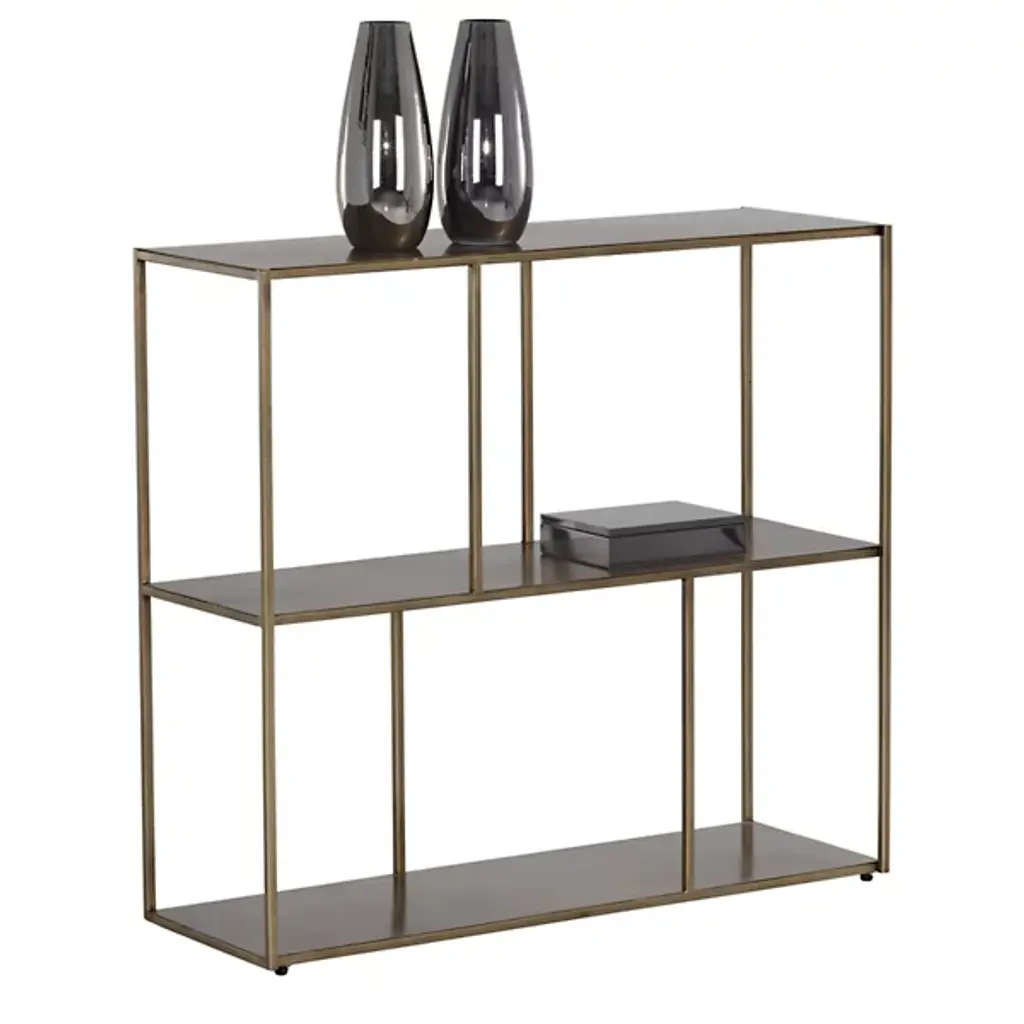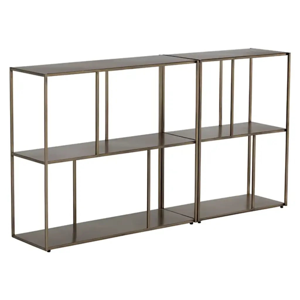 The Eiffel Low Bookcase from Sunpan combines sleek industrial design with functional elegance. Crafted in Vietnam from sturdy iron, its open, minimalist structure provides the perfect backdrop for displaying books, artwork, or cherished decor. The open architectural lines and slender vertical elements create a striking silhouette that shows off its entire structure, enhancing it without overwhelming your space. Durable yet refined, this versatile bookcase blends practicality with contemporary charm, making it an ideal addition to modern or industrial-inspired interiors.