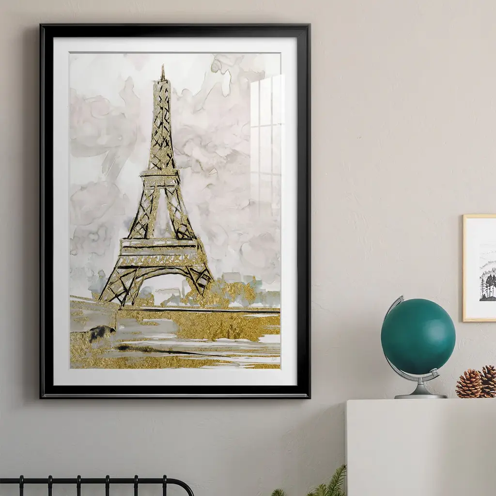Eiffel Tower Glitz Premium Framed Print - Ready to Hang A Premium Framed Print created to last. Framed in distressed wood and available in an array of sizes and colors Featuring a beveled a solid wood stretcher bar, each piece comes ready to hand 4 SIZES AVAILABLE 30.5''X42.5'' - Overall Size 26.5'X36.5'' - Overall Size 22.5''x30.5'' - Overall Size 18.5''x24.5'' - Overall Size Each piece is made to order. Each piece comes with hanging hardware. Made in the USA Ready to Hang Giclee Paper Print Acrylic Glass Beveled Matt Board