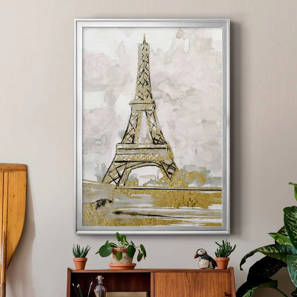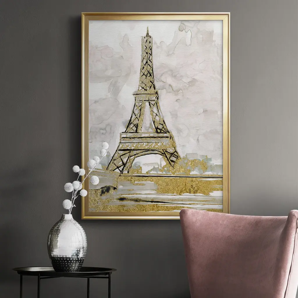 Eiffel Tower Glitz Premium Framed Print - Ready to Hang A Premium Framed Print created to last. Framed in distressed wood and available in an array of sizes and colors Featuring a beveled a solid wood stretcher bar, each piece comes ready to hand 4 SIZES AVAILABLE 30.5''X42.5'' - Overall Size 26.5'X36.5'' - Overall Size 22.5''x30.5'' - Overall Size 18.5''x24.5'' - Overall Size Each piece is made to order. Each piece comes with hanging hardware. Made in the USA Ready to Hang