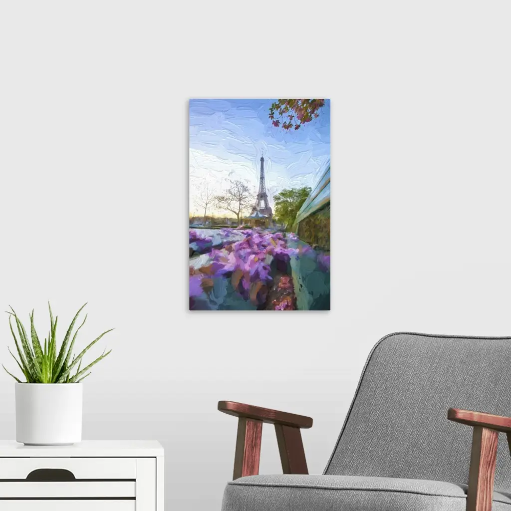 Eiffel Tower In Artwork Style During Spring Time In Paris, France