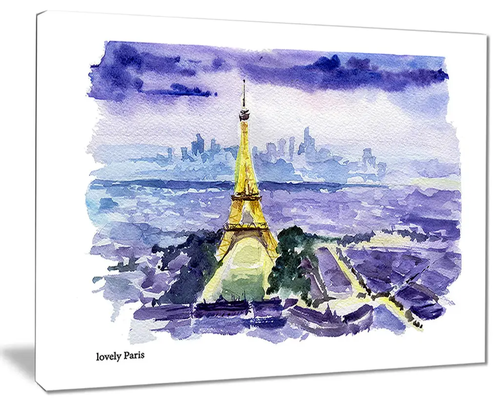 The Eiffel Tower on Blue Background canvas art print is sure to make an impression on anyone who sees it. This artwork is gallery wrapped around a 1-inch solid wood frame and arrives carefully packaged and entirely ready to hang on the wall. Design Art only uses the highest resolution and pigments to ensure a crisp colorful print that is never faded or pixelated. This artwork is sure to be a conversation starter in any home or office.