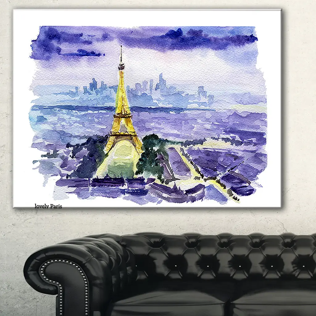 The Eiffel Tower on Blue Background canvas art print is sure to make an impression on anyone who sees it. This artwork is gallery wrapped around a 1-inch solid wood frame and arrives carefully packaged and entirely ready to hang on the wall. Design Art only uses the highest resolution and pigments to ensure a crisp colorful print that is never faded or pixelated. This artwork is sure to be a conversation starter in any home or office.