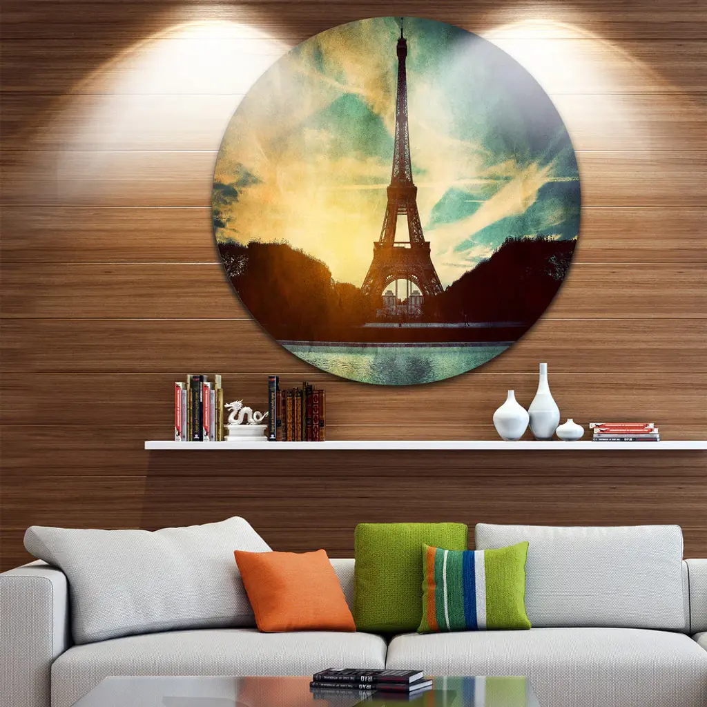 Eiffel Tower Retro Style, Cityscape Round Wall Art, 38"