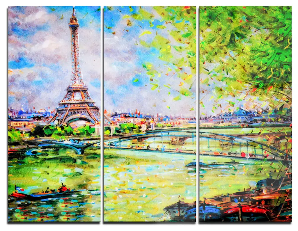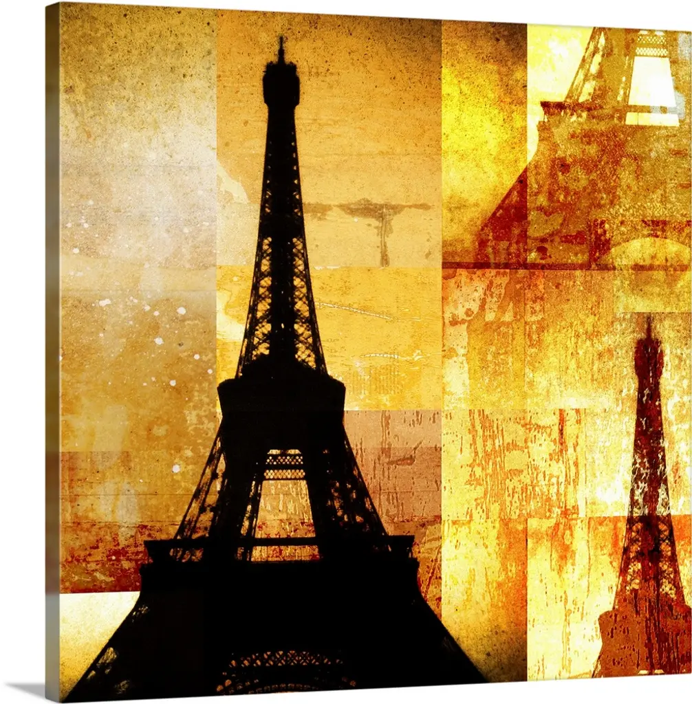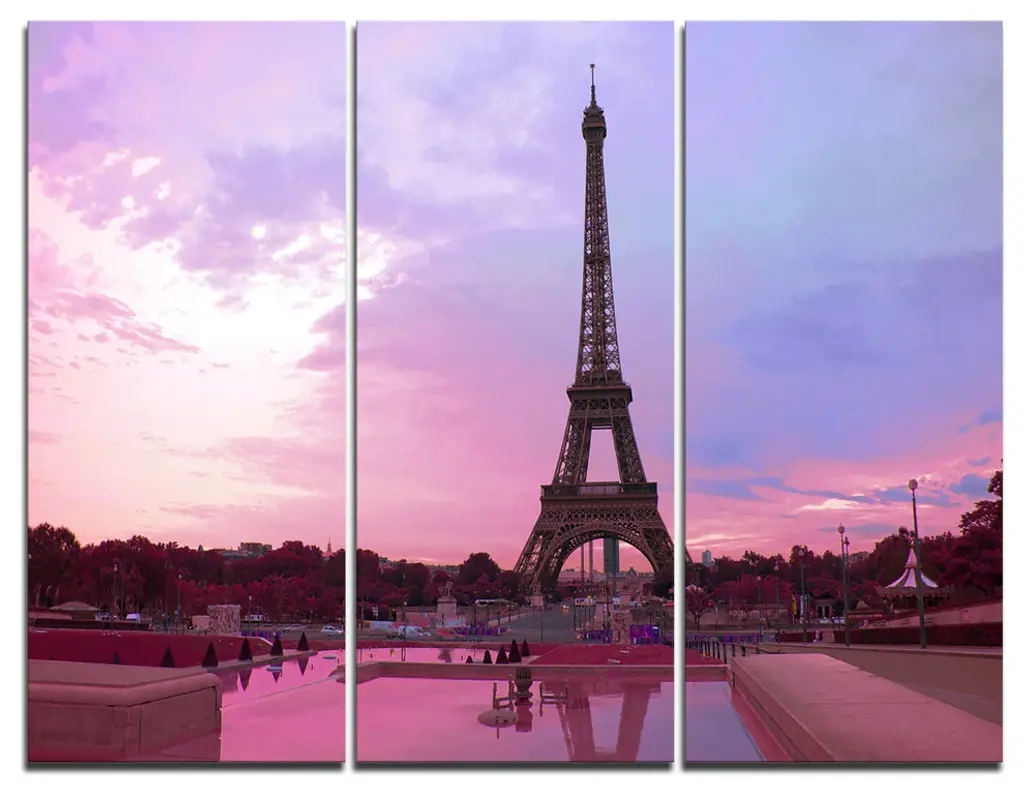 "Eiffel Tower Retro Style" Glossy Metal Wall Art, 3 Panels, 36"x28"