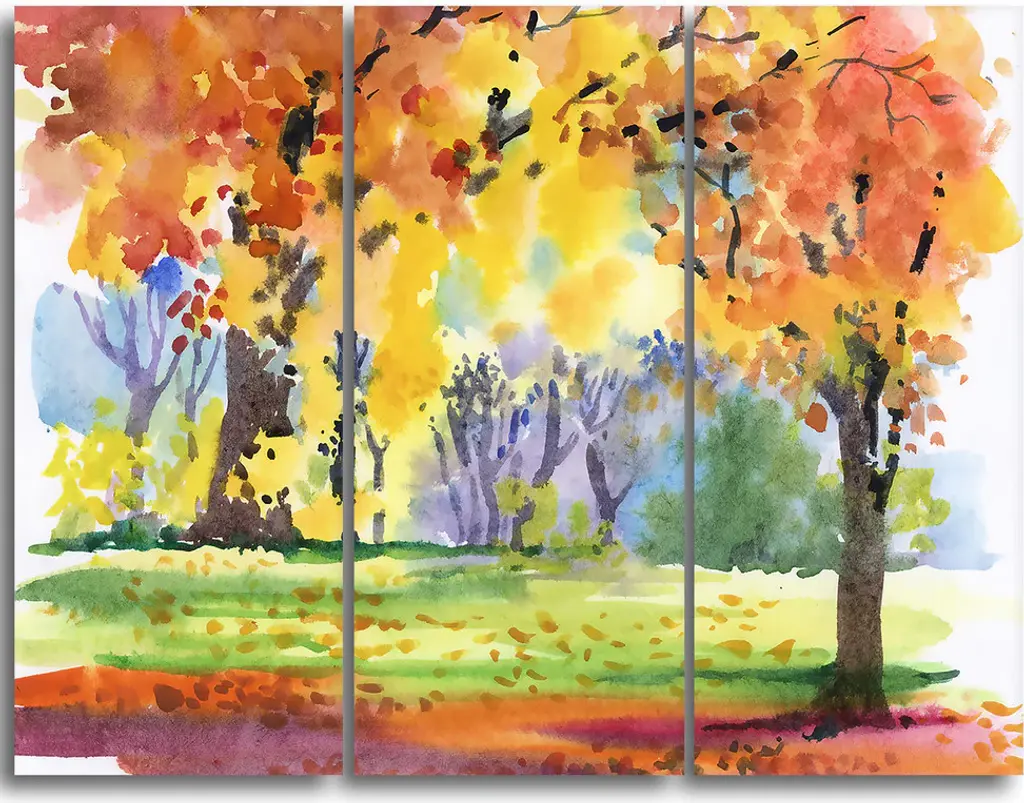 "Eiffel Tower View In Fall" Glossy Metal Wall Art, 3 Panels, 28"x36"