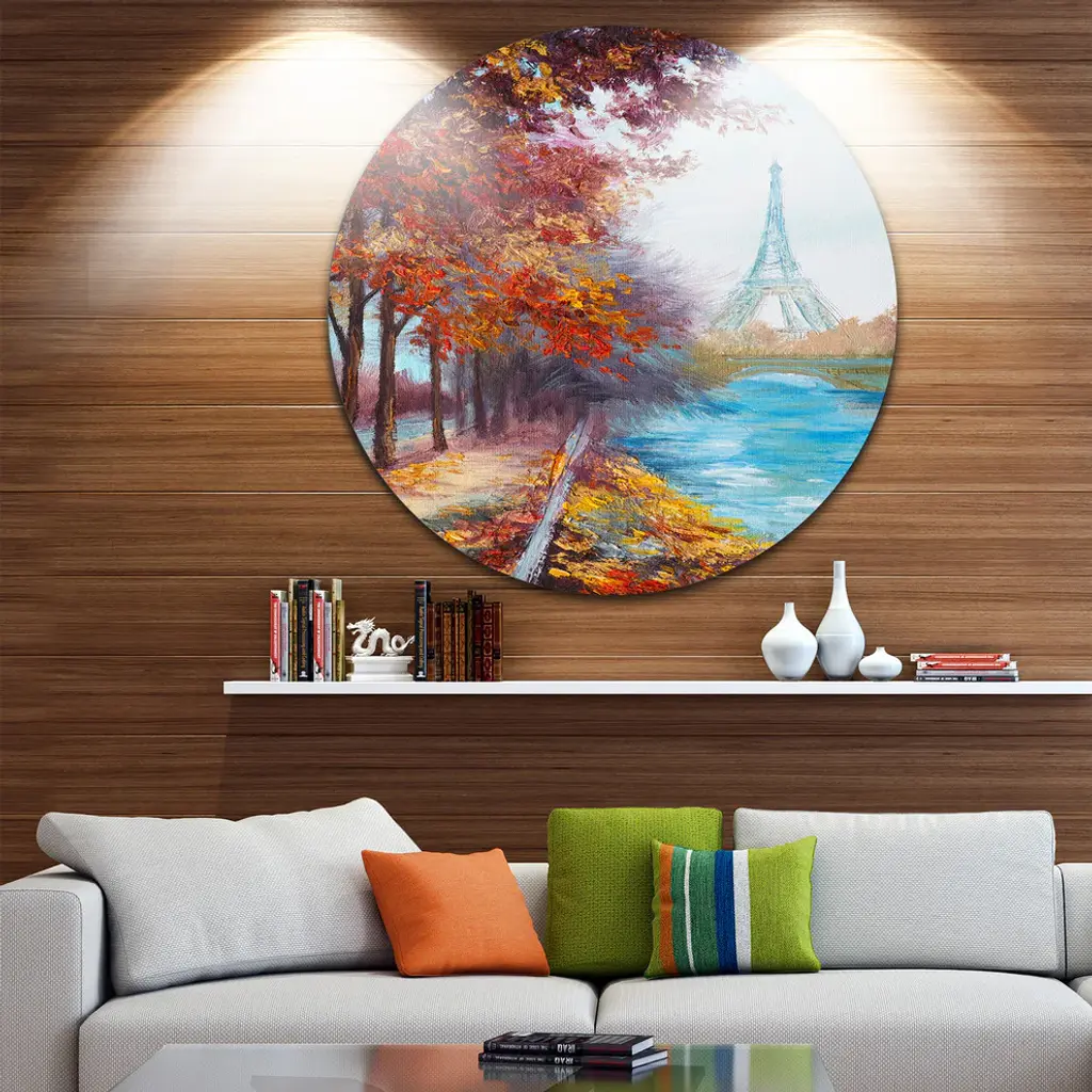 Eiffel Tower View In Fall, Landscape Round Wall Art, 23"