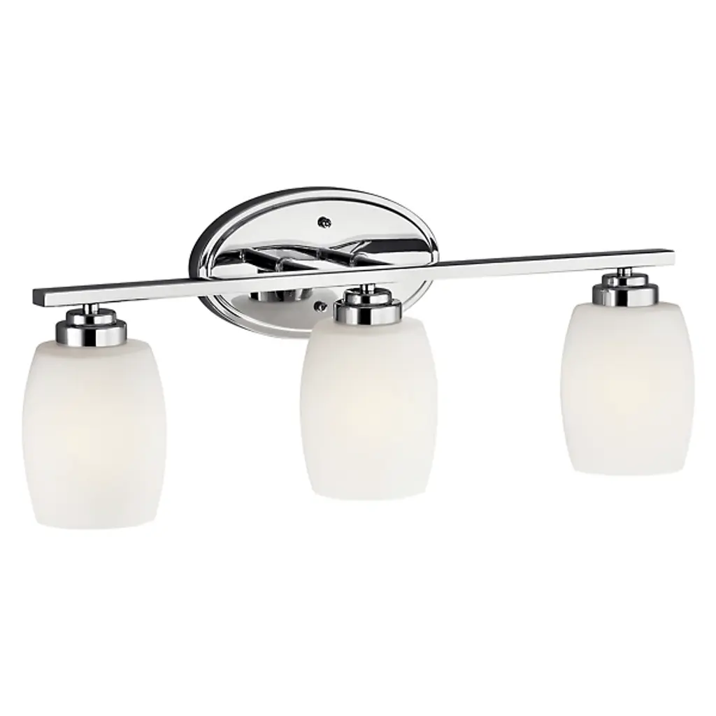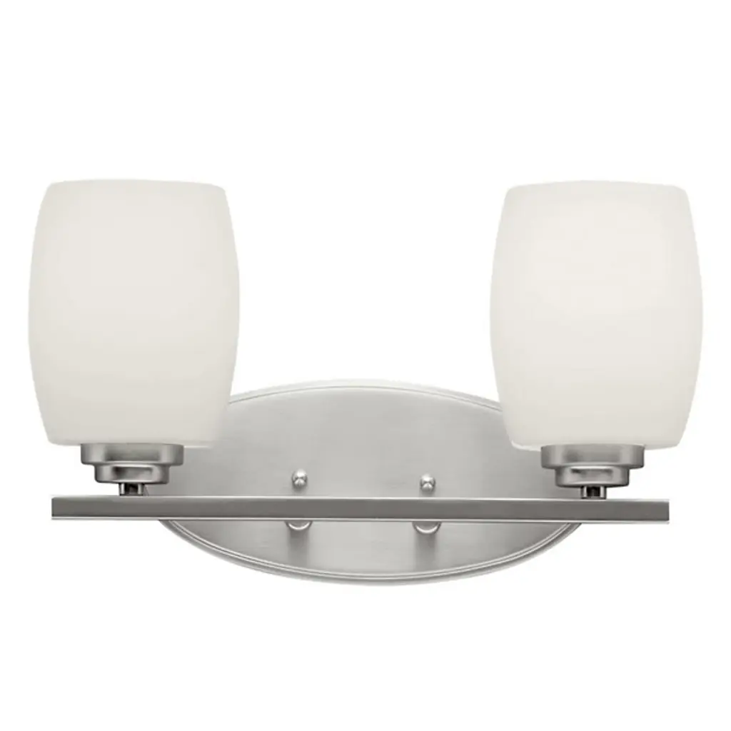 Named after famed furniture designer Eileen Gray, the Kichler Eileen Vanity Light features a clean linear construction with simple, rounded glass for a style that is as unique and contemporary as Eileen Gray's. The weightless elegance of brushed nickel complements the White etched glass to give the bath bar added ambiance ideal for today's ever-evolving aesthetic.