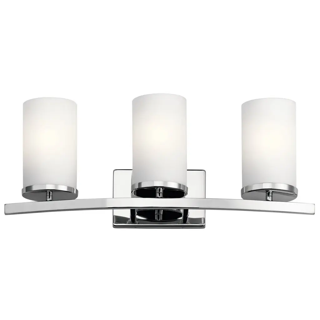 Named after famed furniture designer Eileen Gray, the Kichler Eileen Vanity Light features a clean linear construction with simple, rounded glass for a style that is as unique and contemporary as Eileen Gray's. The weightless elegance of brushed nickel complements the White etched glass to give the bath bar added ambiance ideal for today's ever-evolving aesthetic.