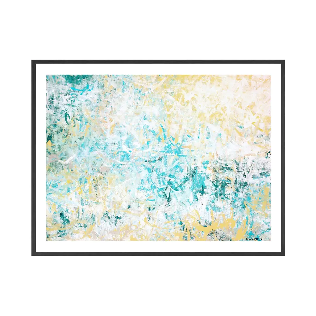 Brighten up your home decor with this horizontal abstract art featuring a mix of yellow, blue and white brushstrokes. The decorative Norman Wyatt artwork, 'Elation' will complement your space with its transitional and contemporary aesthetic. This piece is handcrafted in Chattanooga, Tennessee by Ready2HangArt using a locally sourced artist print, with a frame and a rear hanger for simple installation. Offering a wide range of transitional subjects and unique textures, Norman Wyatt's collections will add interest to any modern or contemporary decor.