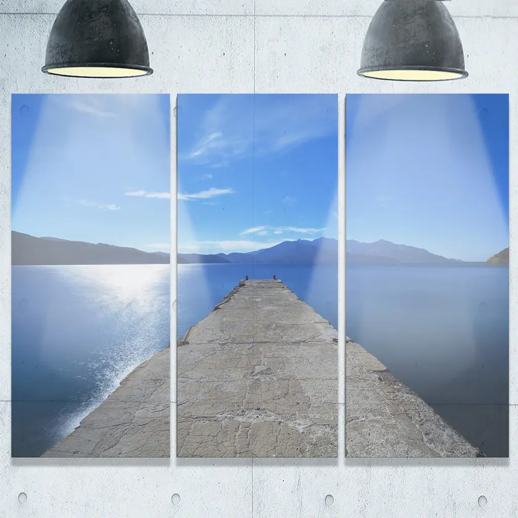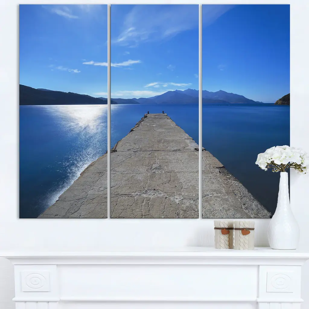 "Elba Island Pier And Capanne Mountain" Metal Wall Art, 3 Panels, 36"x28"