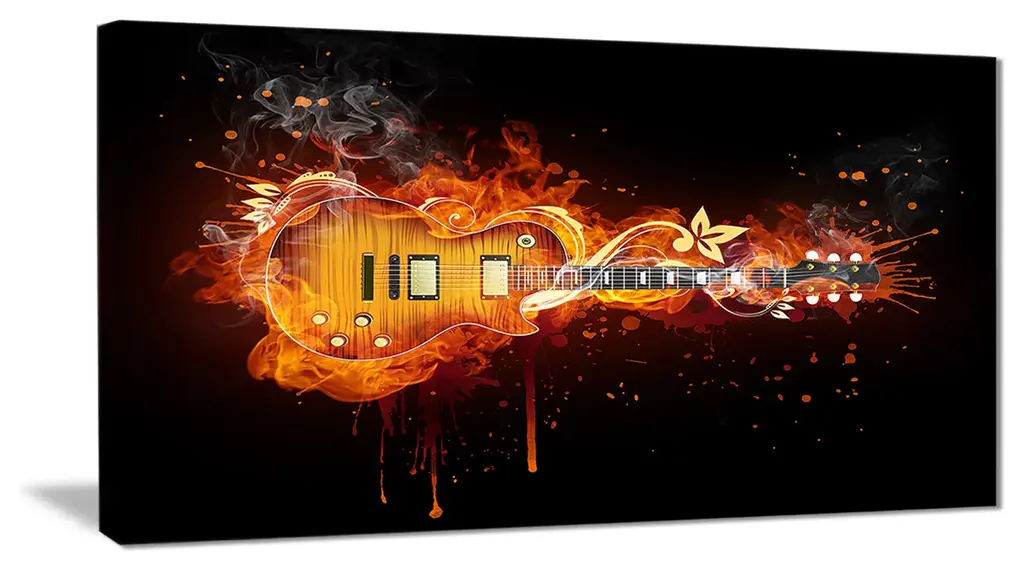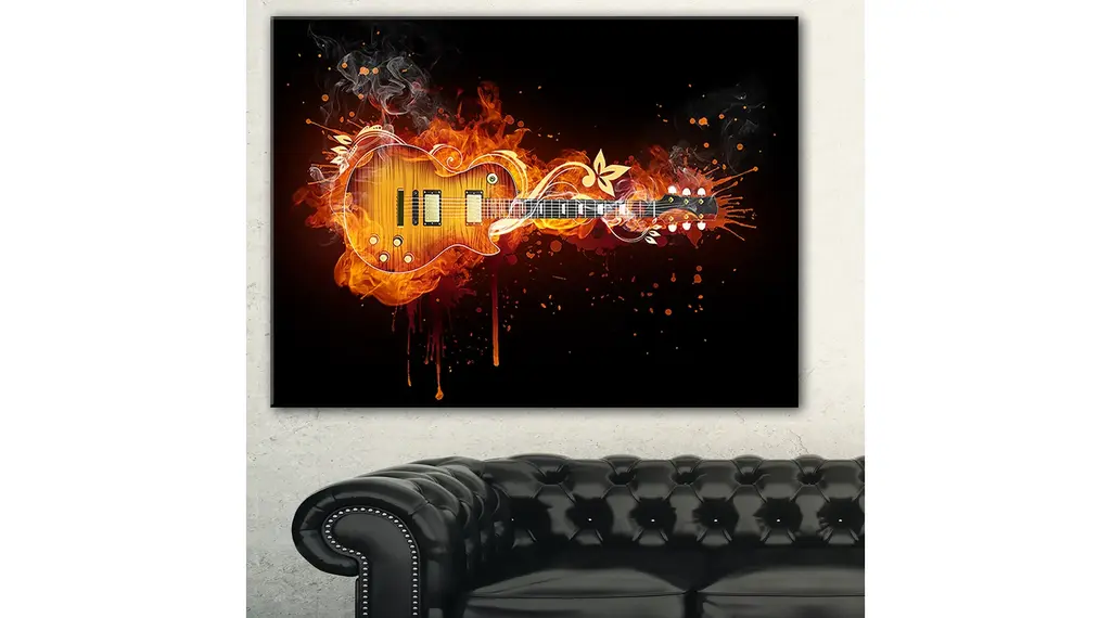 The Electric Guitar canvas art print is sure to make an impression on anyone who sees it. This artwork is gallery wrapped around a 1-inch solid wood frame and arrives carefully packaged and entirely ready to hang on the wall. Design Art only uses the highest resolution and pigments to ensure a crisp colorful print that is never faded or pixelated. This artwork is sure to be a conversation starter in any home or office.