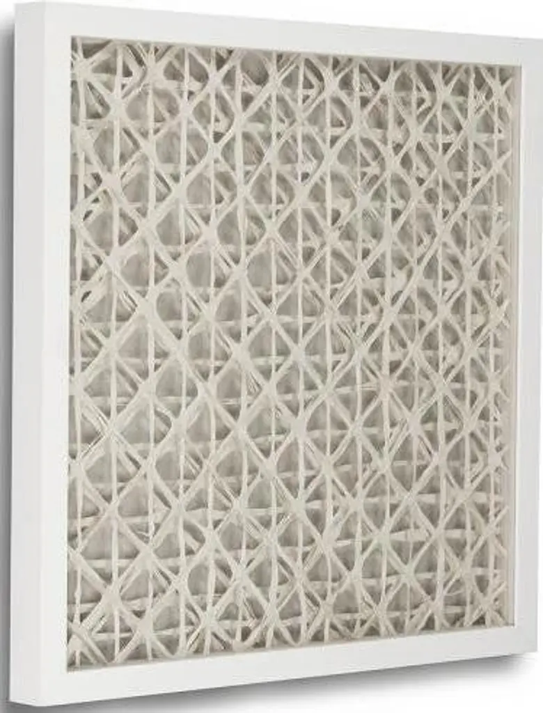 Transform your home into a haven of elegance with this captivating Abstract Alabaster Framed Art Wall Decor. Perfectly sized to make a statement, its intricate design is a harmonious blend of modern artistry and timeless sophistication. The enchanting alabaster shade sets a serene backdrop that showcases the refined craft of handmade paper art. Every detail, from the luxurious velvet backing to the polished nickel frame, has been thoughtfully curated to embody elegance and durability. This piece is framed with glass, offering both protection and a clear view of its textured beauty, while the robust fir wood structure guarantees its lasting appeal. The abstract nature of the art encourages personal interpretation and engagement"”ideal for sparking conversation in any space it graces. Whether you choose to display it in your living room, office, or bedroom, this decor piece is sure to enhance your environment with its understated charm and alluring depth. - Dimensions: 24H 24W 1.75D - Condition: New - Style: Abstract art, a striking addition to any decor theme - Materials: Polished nickel, linen, handmade paper art, fir, glass, paper, velvet - Color: Elegant alabaster finish - Durable frame with glass overlay for protection