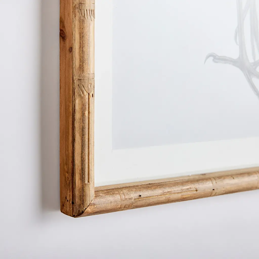 The Blue Heron is one of nature's most regal creatures. This set of four is a charming interpretation. Finished off in simple, fir wood frames, this set makes a great addition to beach cottage or villa. Ready to hang. Coastal-inspired. Monochromatic series. Includes mat. Set of 4, each piece 16.5 x 1 x 23.5