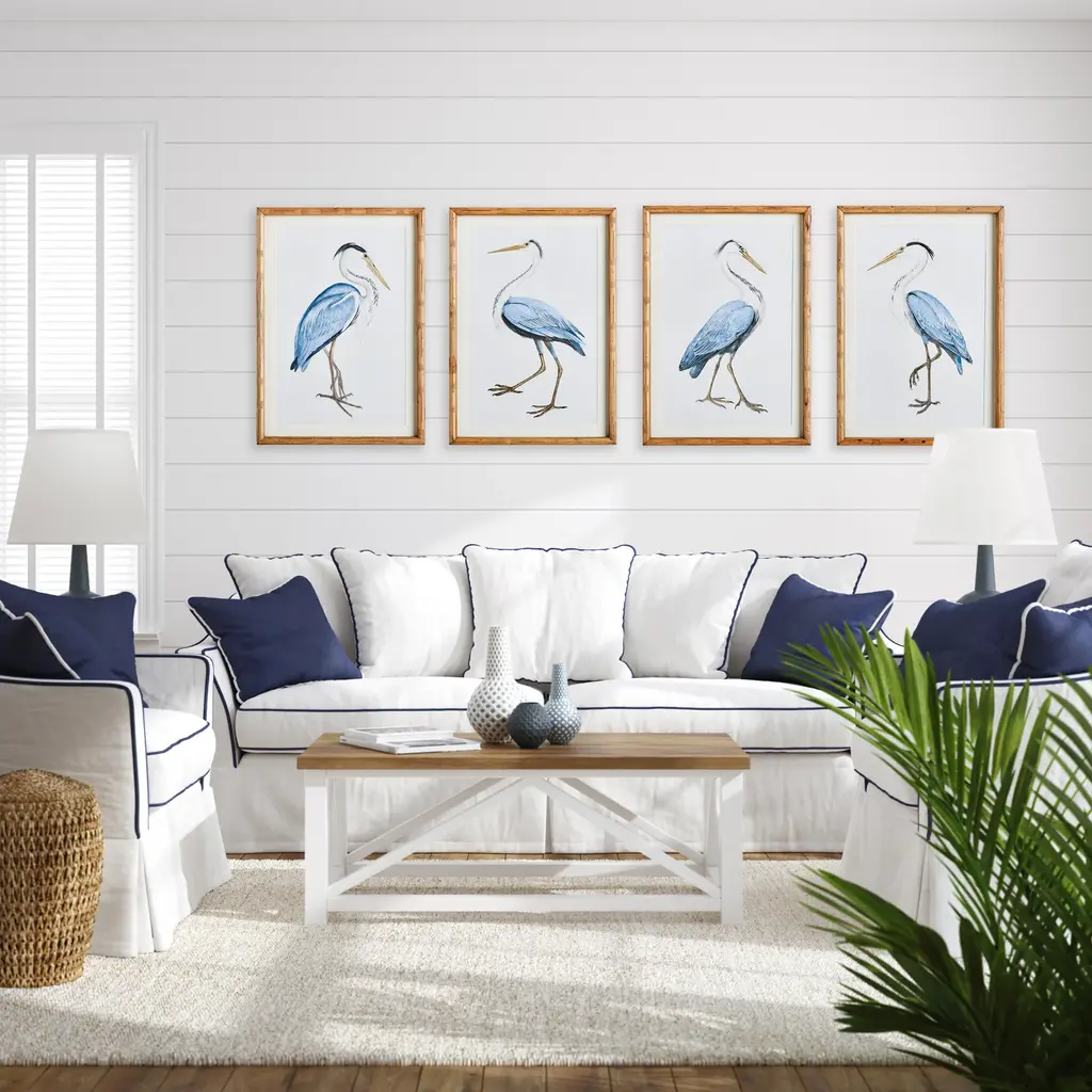 Elegant Blue Heron Coastal Prints - 4 Piece Set