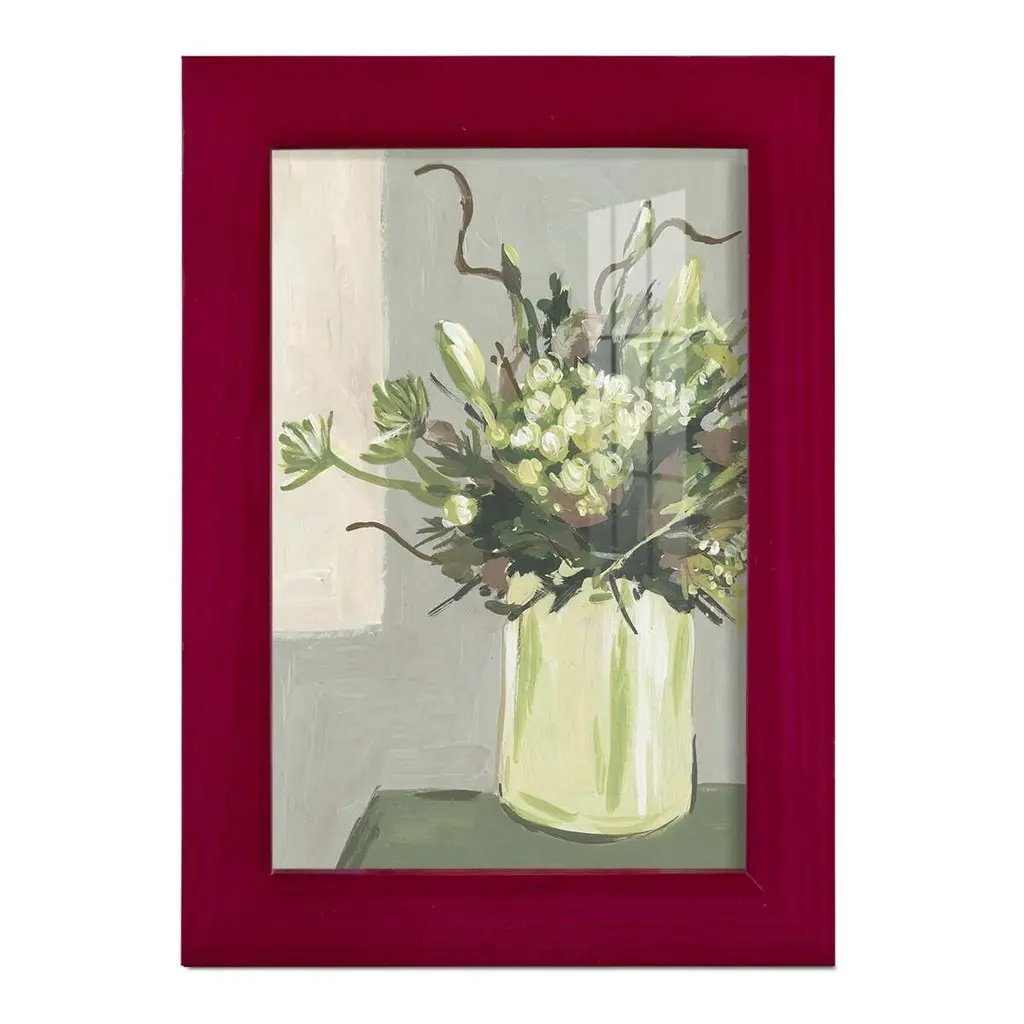 Elegant Floral I -Framed Print W/glass-Cherry Red - 4X6 - Maple