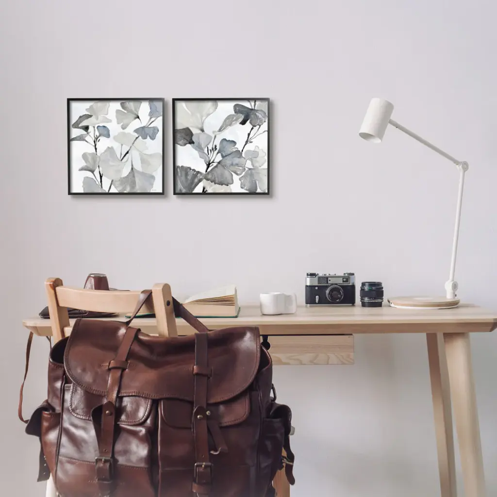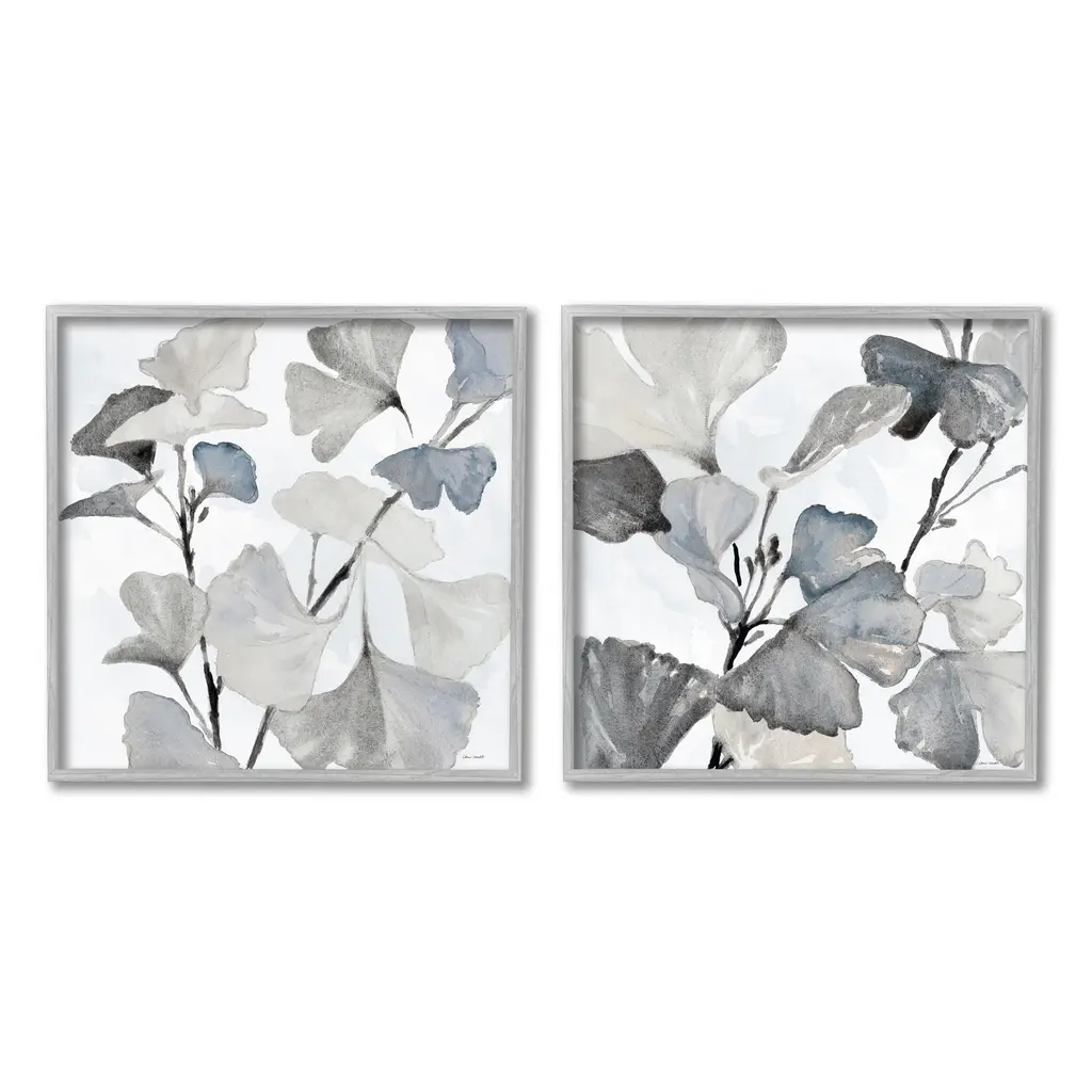 Elegant Monochromatic Plant Leaves Botanical Illustration, 2Pc, Each 12 X 12