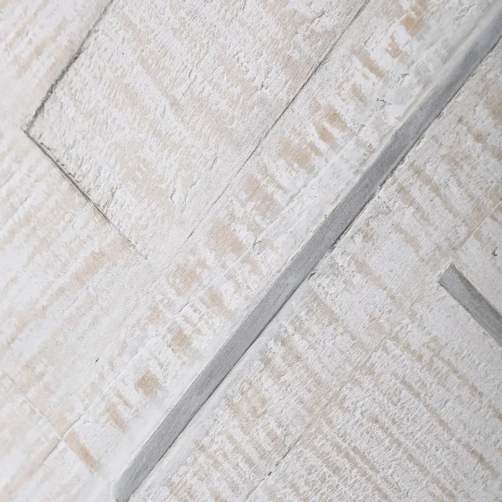 Elegant Whitewashed Pine Wood Herringbone Wall Art Panel 24" Square Silver
