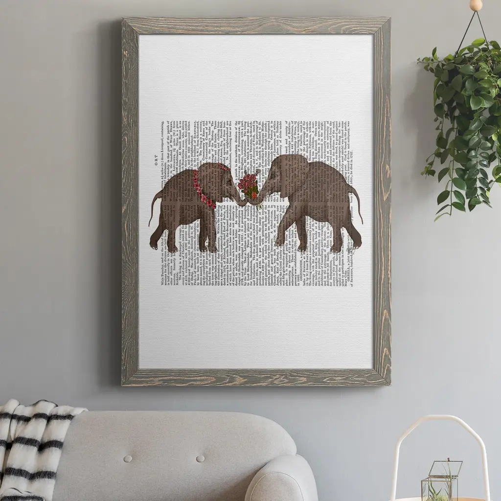 Elephant Bouquet, Landscape-Premium Framed Canvas - Ready To Hang - 27.5x37.5 - Walnut